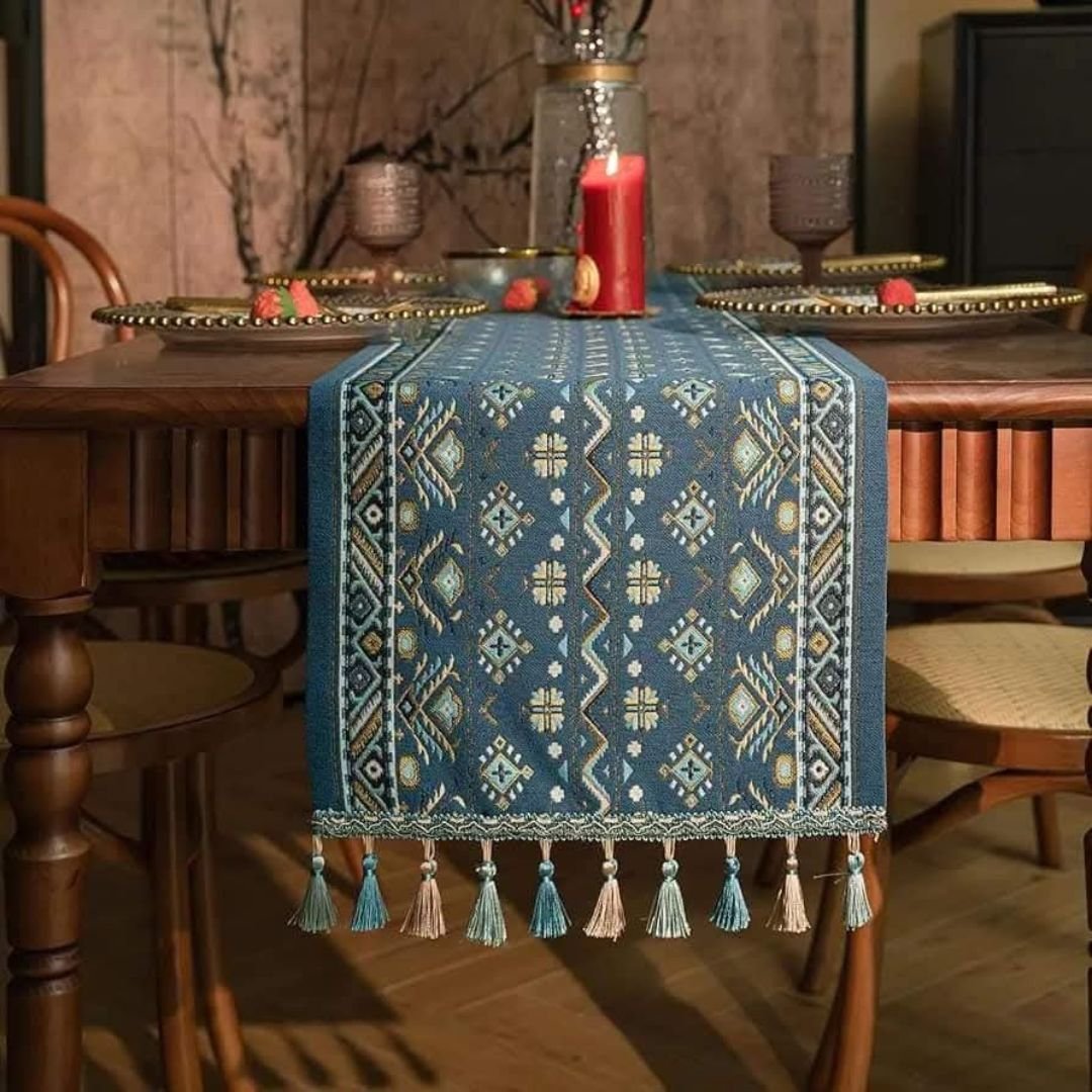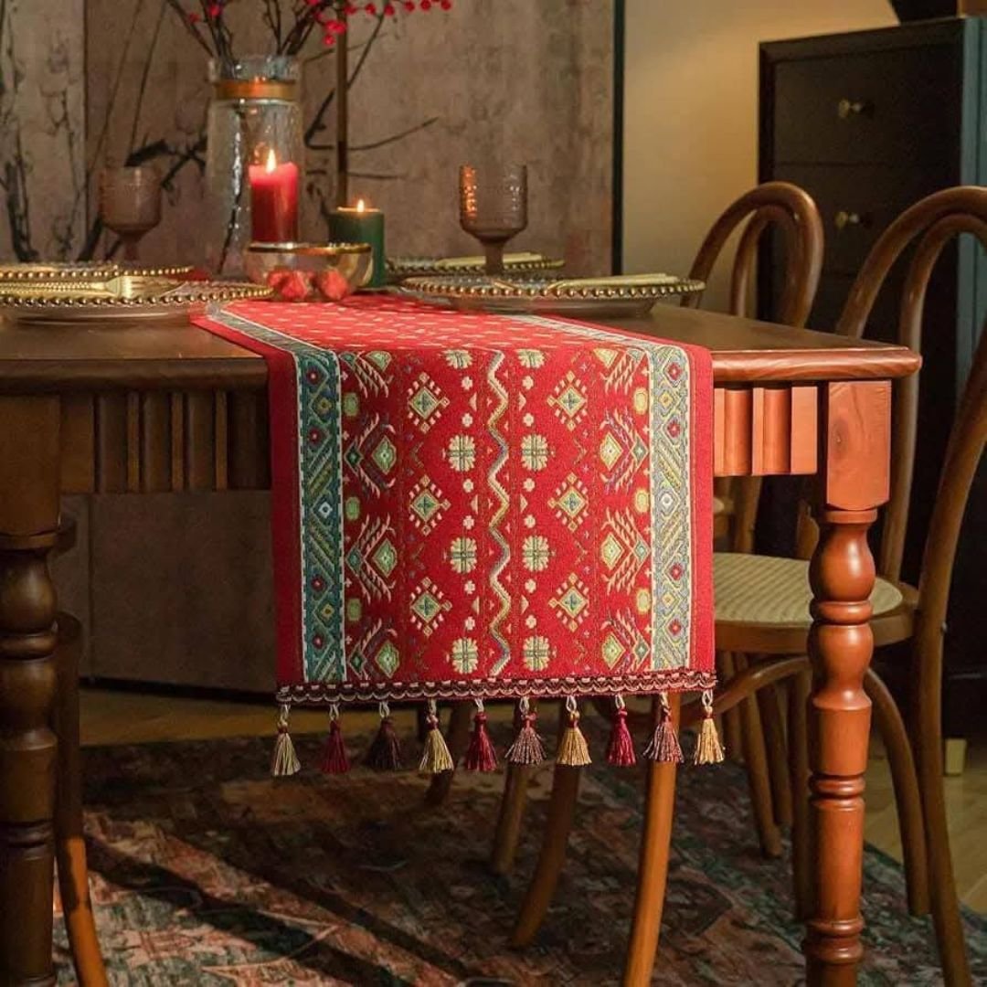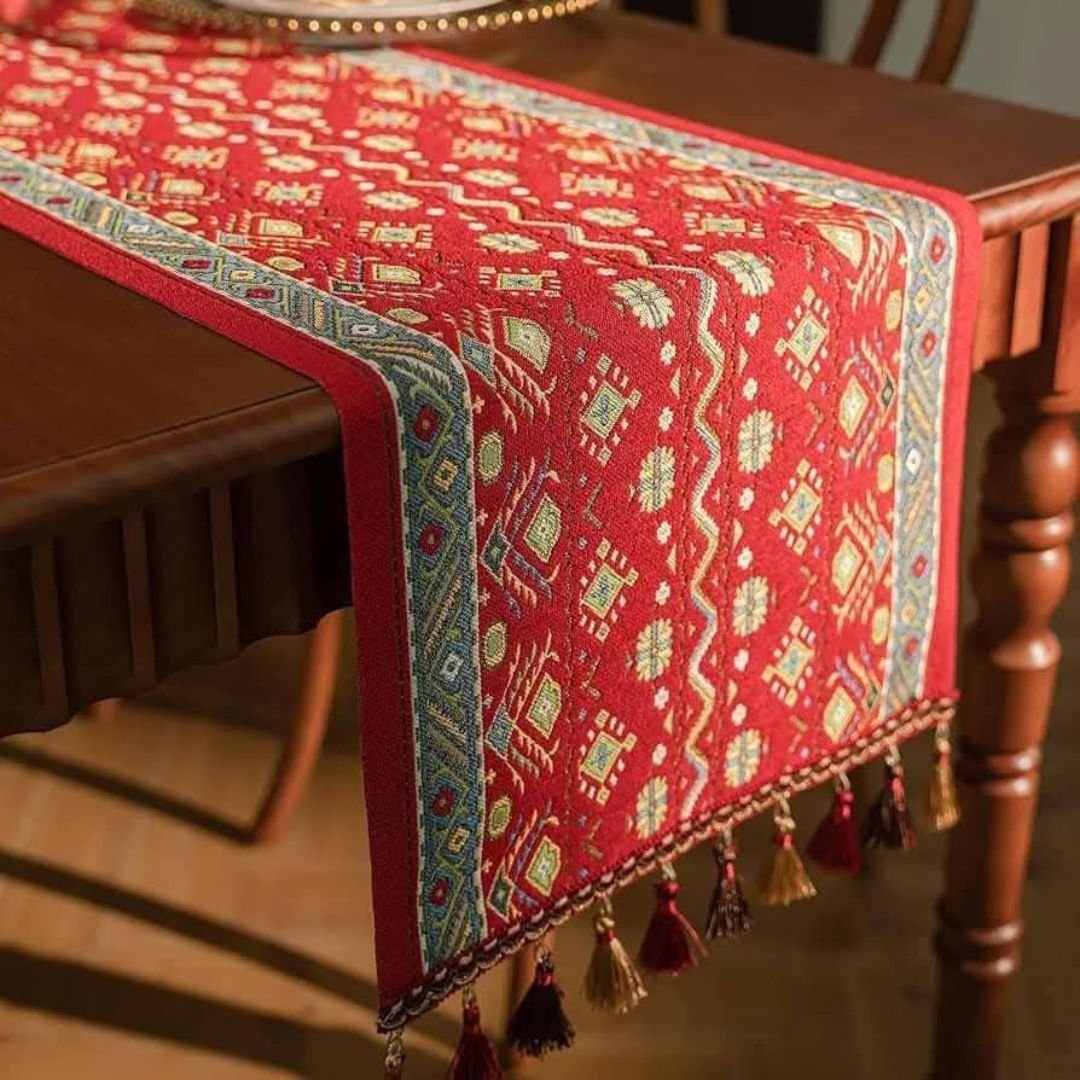 It is said that the 19th century was a period marked by various artistic styles and cultural influences. The designs on these table runners were inspired by the intricate designs, vibrant colors and elaborate geometric patterns that reflect the cultural heritage of the 19th century.
