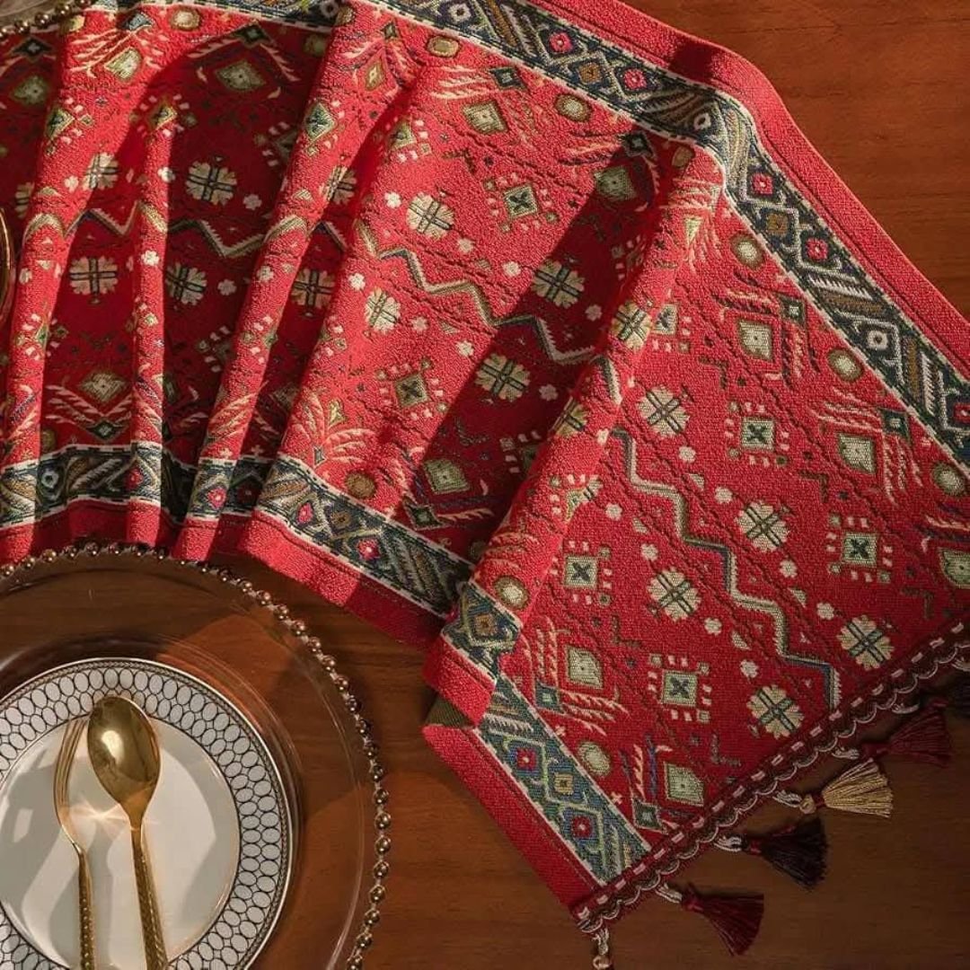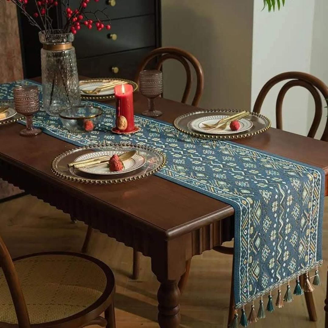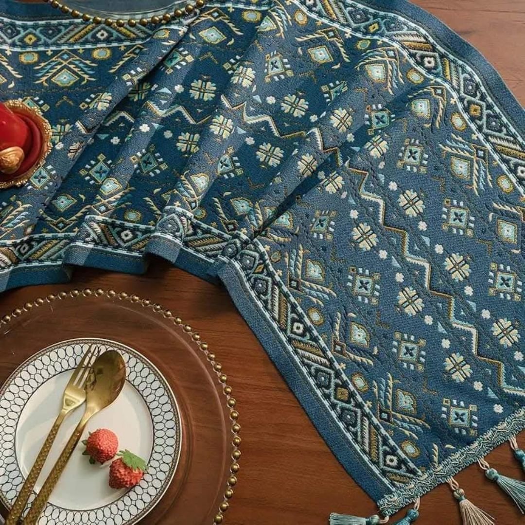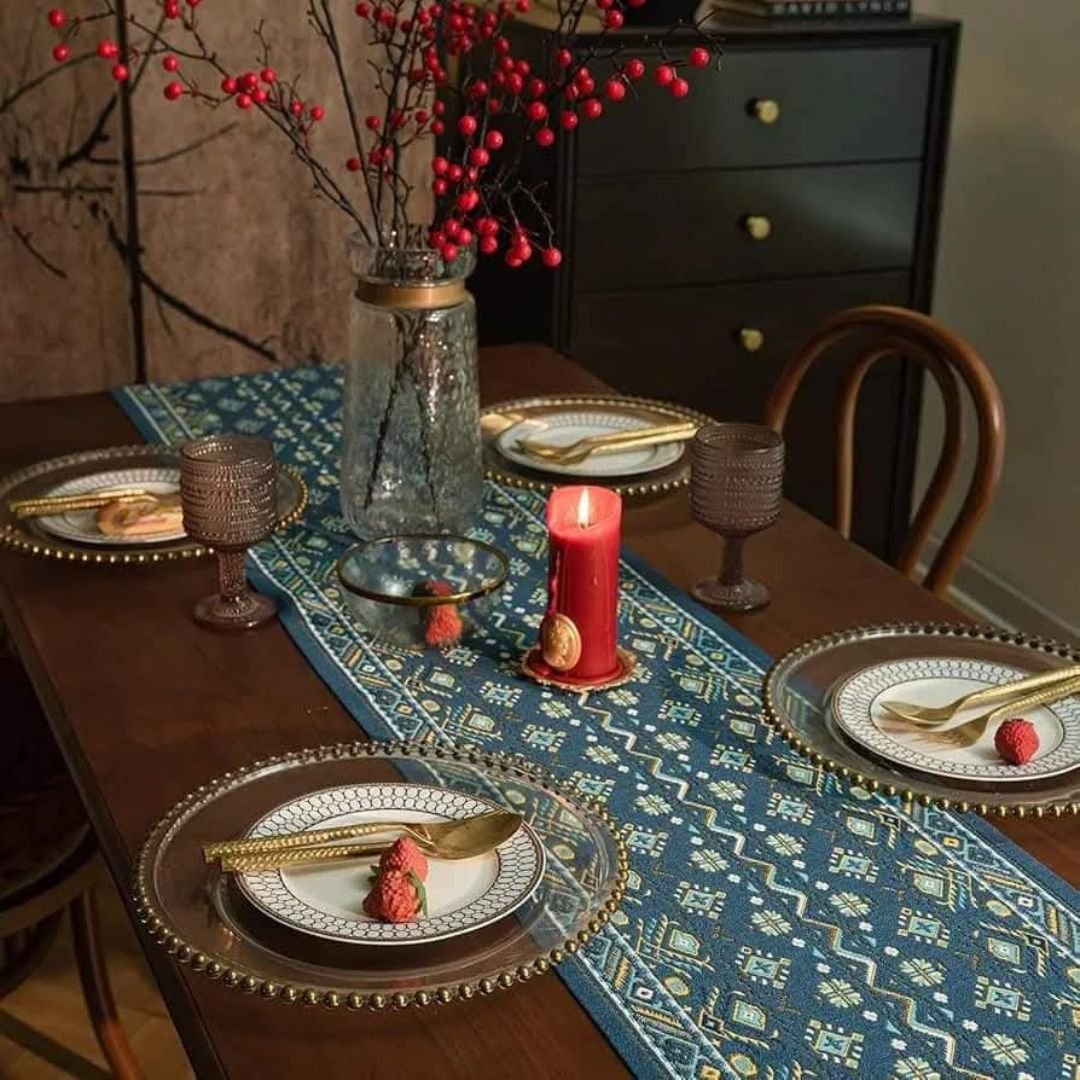 It is said that the 19th century was a period marked by various artistic styles and cultural influences. The designs on these table runners were inspired by the intricate designs, vibrant colors and elaborate geometric patterns that reflect the cultural heritage of the 19th century.