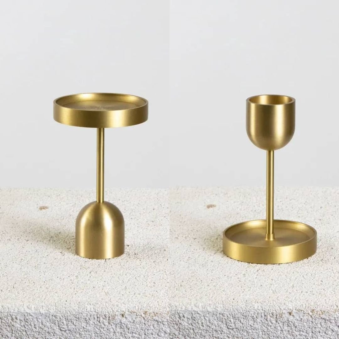 Create a captivating table top display with varying heights, adding a touch of modern sophistication to any setting with these matt golden pillar candle holders. These Brass Pillar Candle Holders can be used in two ways which makes it very easy to create a candle group setting. Illuminate your space with the soft, warm glow of candlelight, and let this remarkable piece transport you to a world of enchantment and refined elegance.