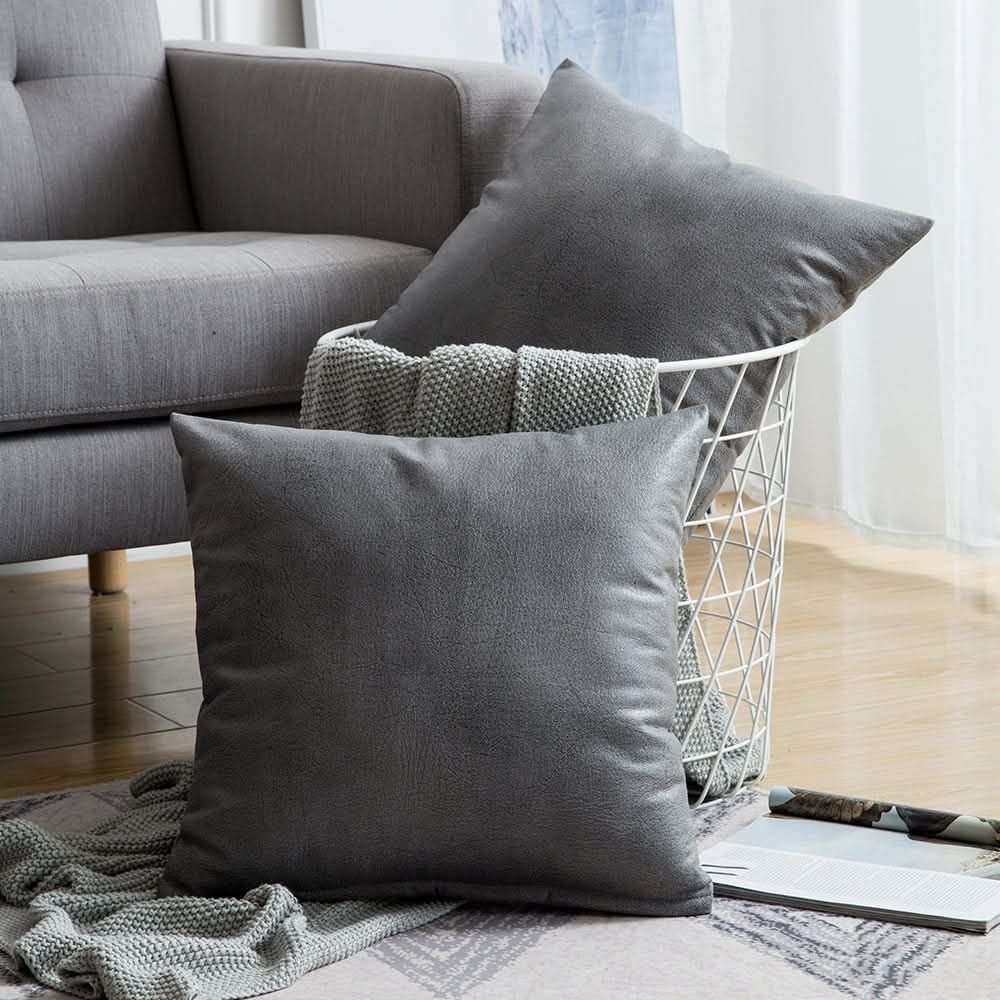 Charcoal Élan Vegan Leather Cushion Cover