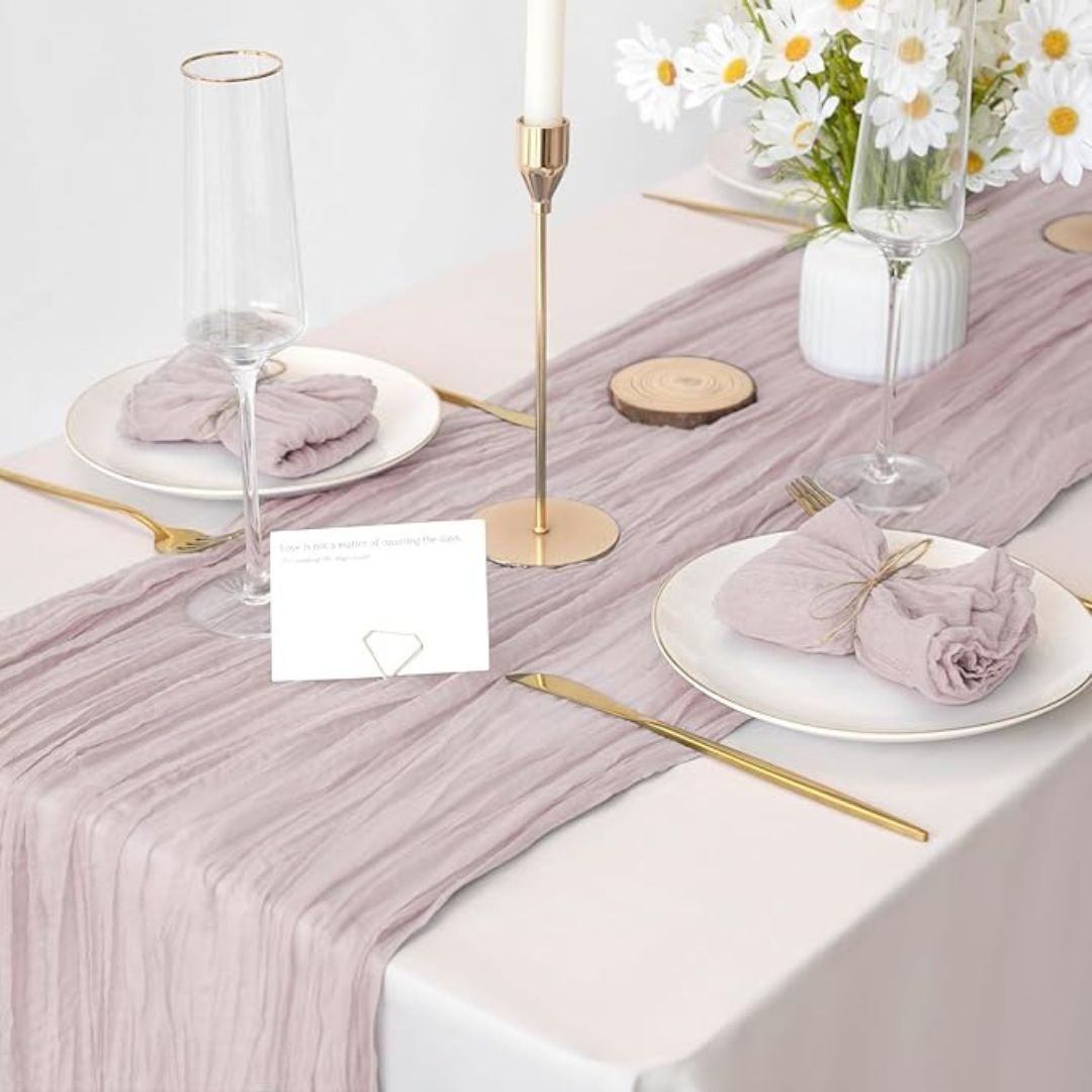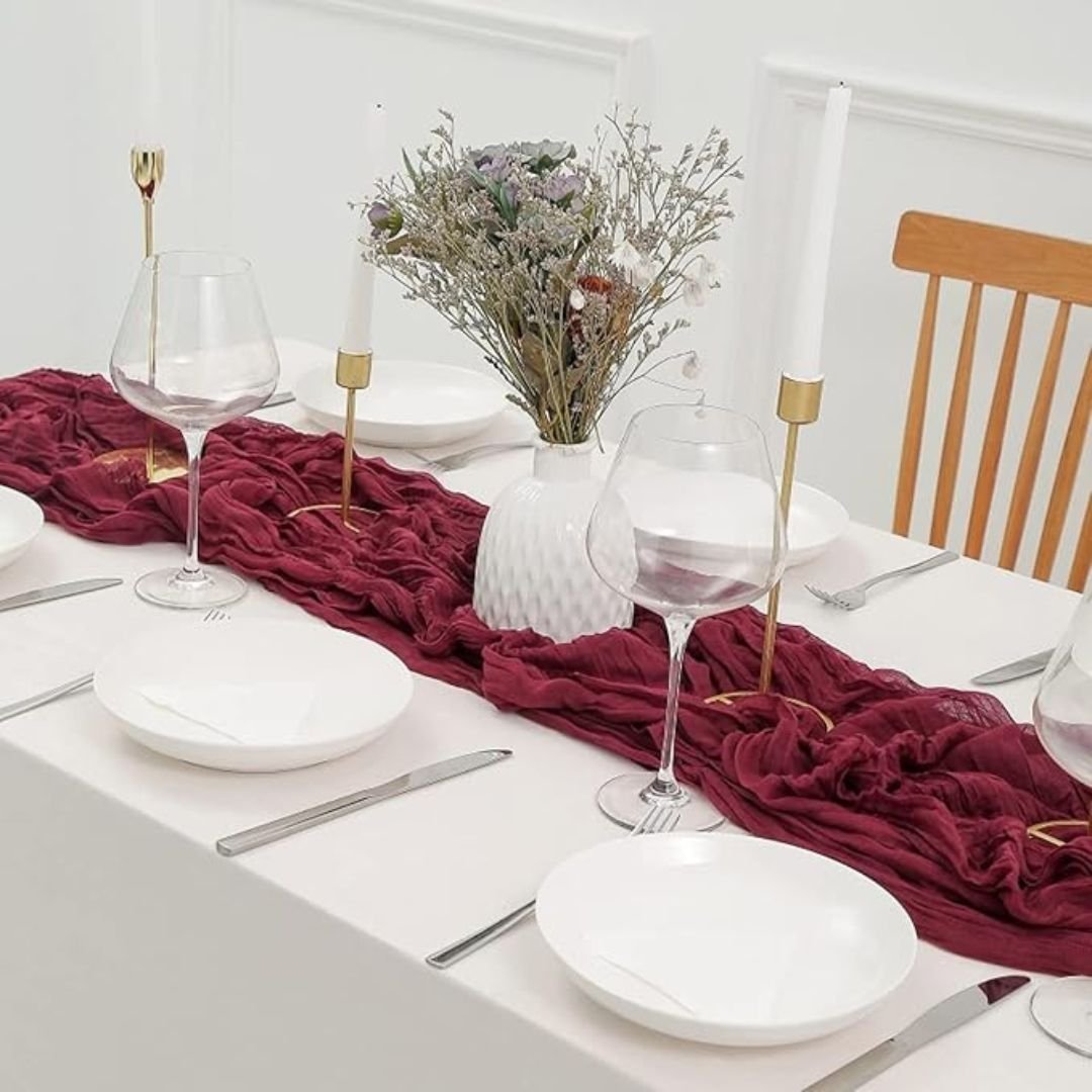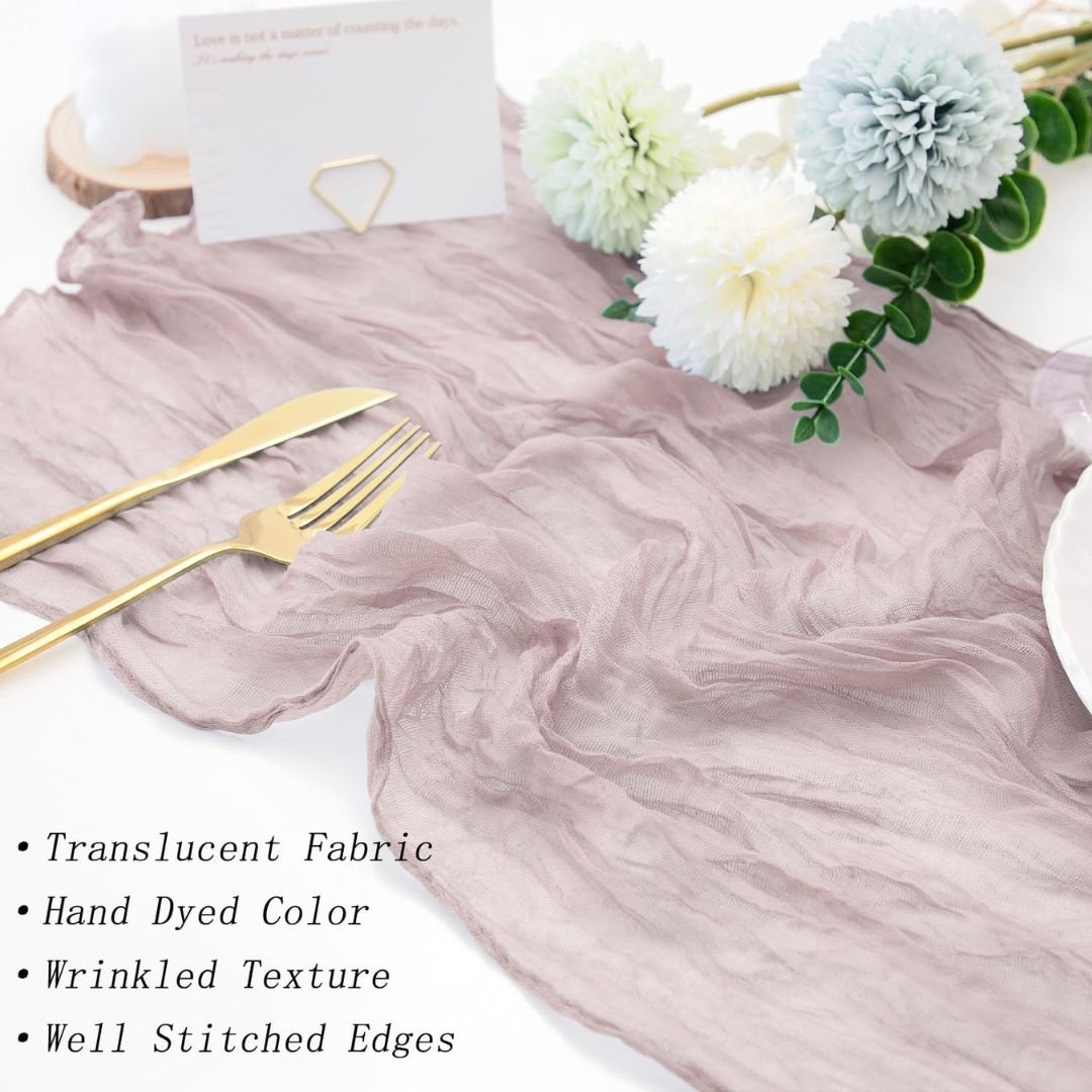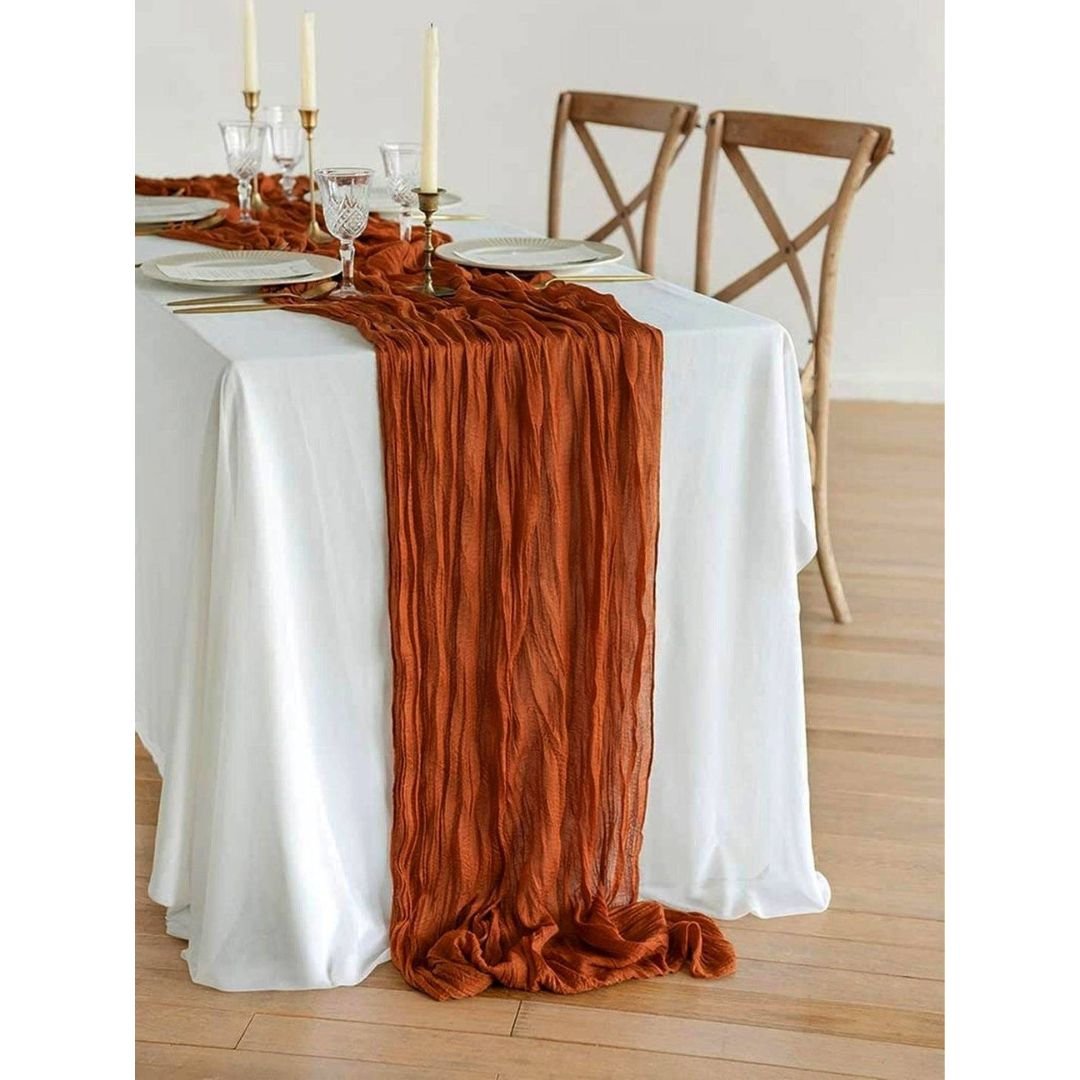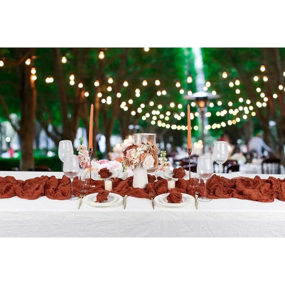 Planning to throw a party? You can’t go wrong with our Cheesecloth Table Runners. Cheesecloth Table Runners are the ideal choice all over the world for weddings, private parties, house warmings, birthdays and so on. They are lightweight and easy to work with, which makes them a practical choice for creating an effortlessly stylish atmosphere.