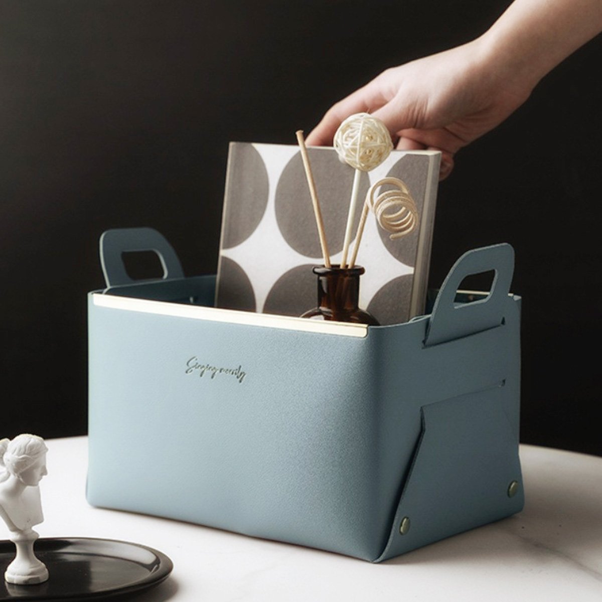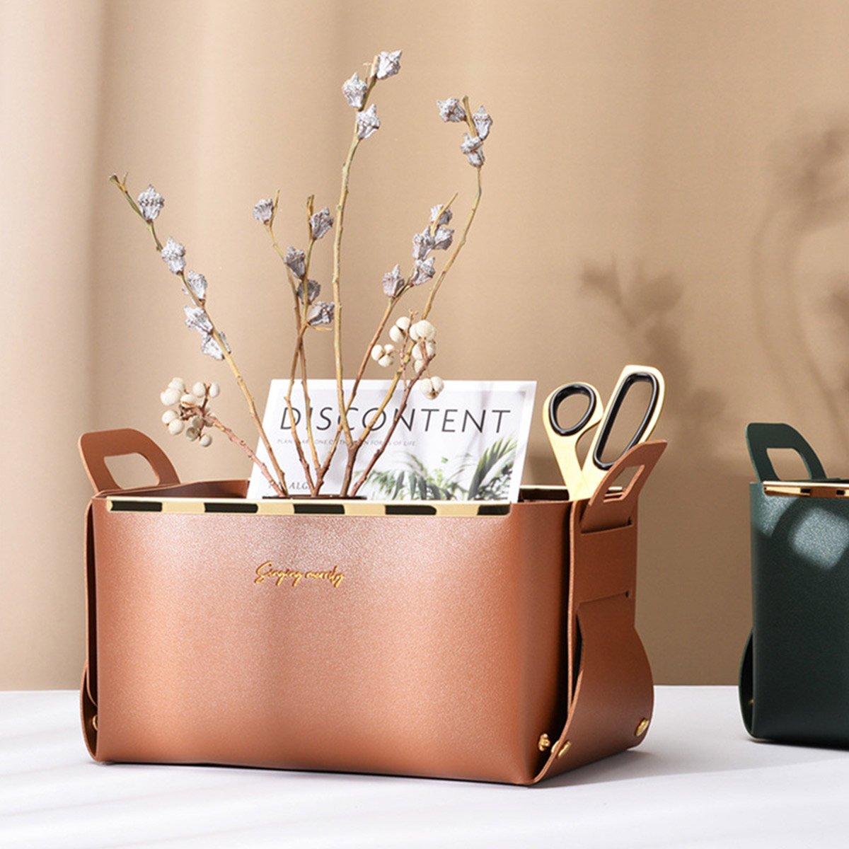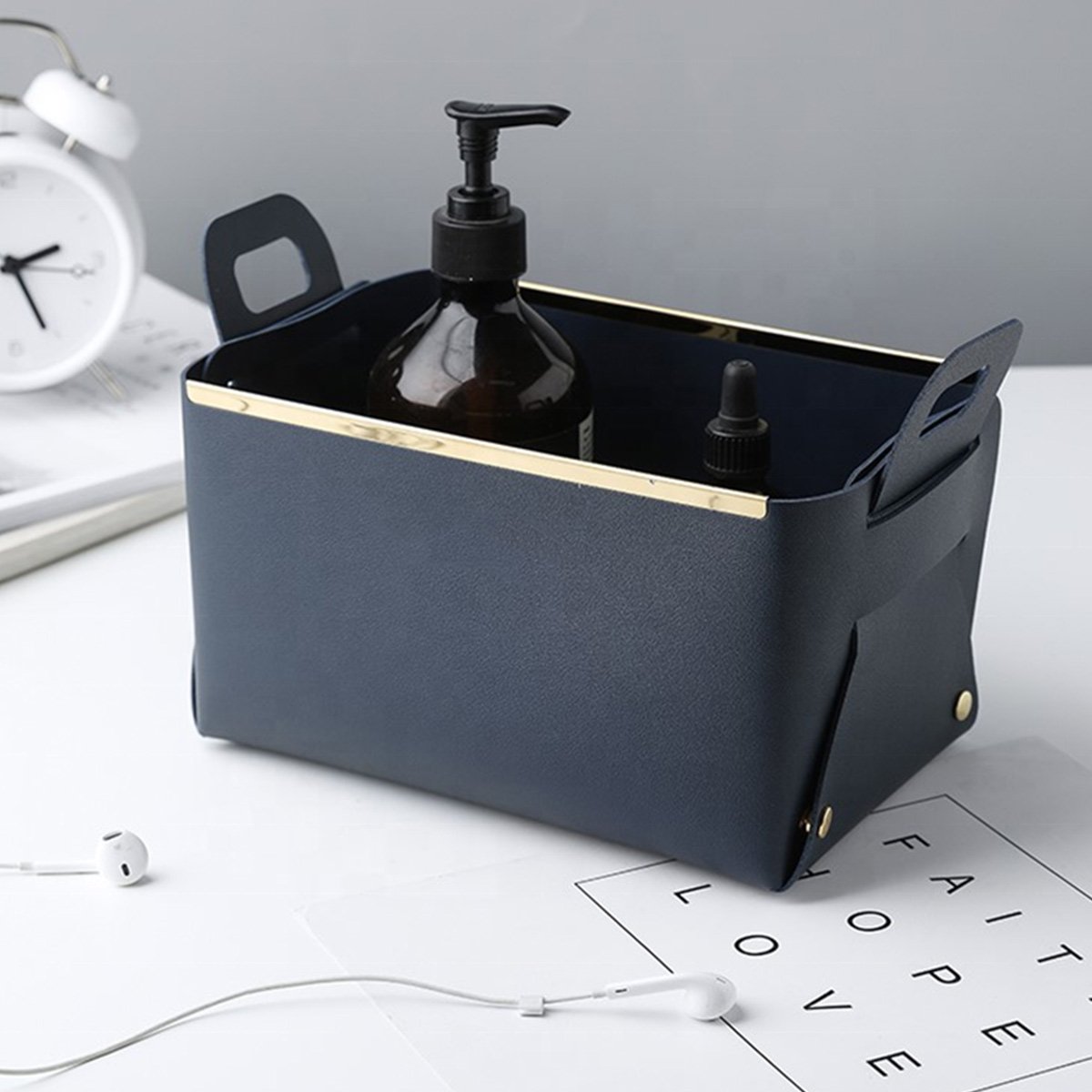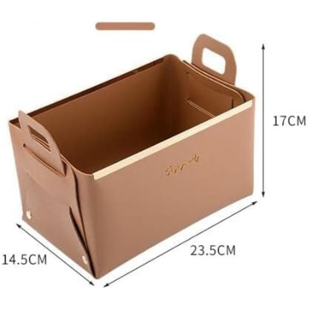 Our Collapsible Storage Baskets are the perfect storage solution for all your everyday items like pens, cards, facial masks, medicines, pills, toiletries, facial towels, etc. They are made of superior quality faux leather and have upgraded metal strips and buttons which ensure they remain steady no matter what you put in them.