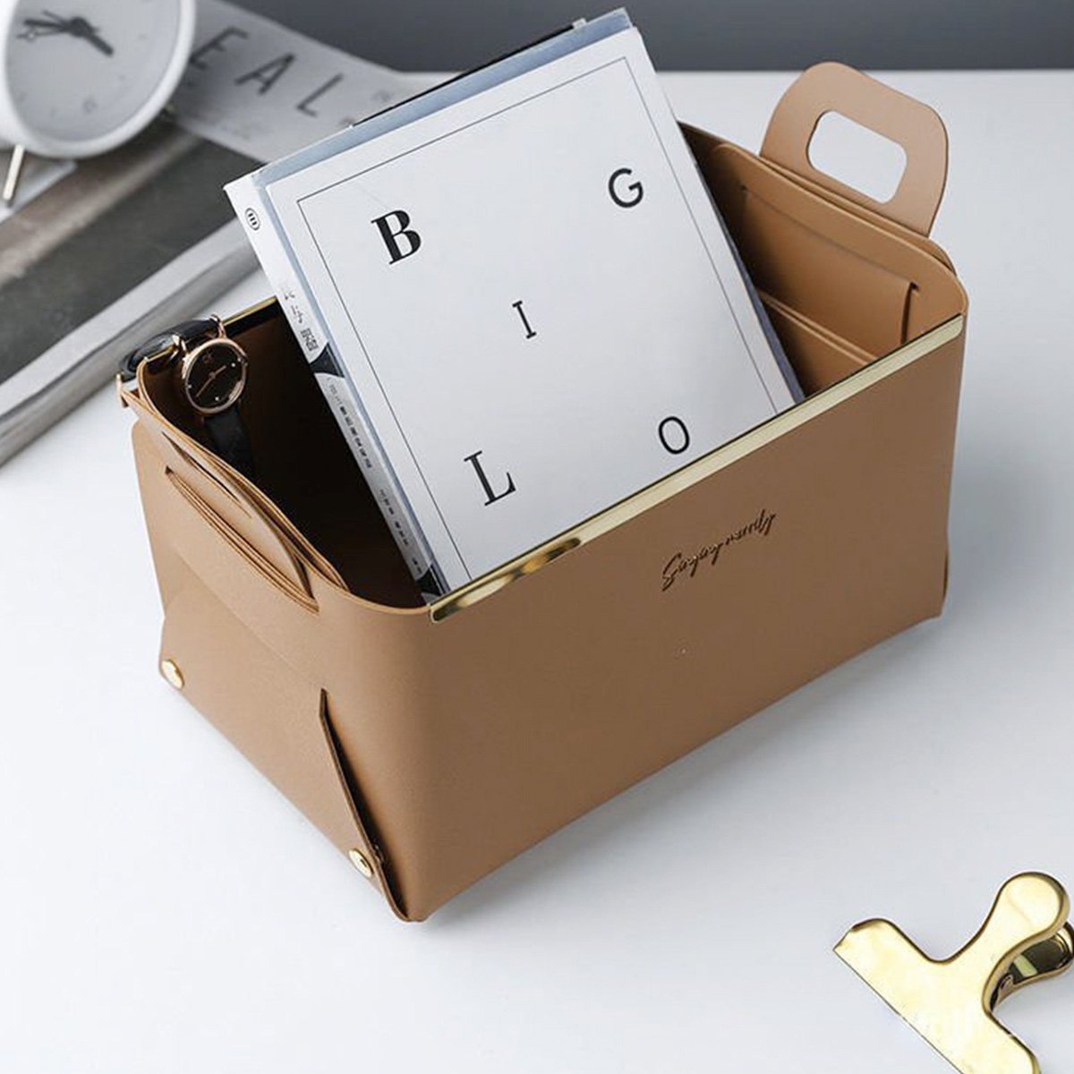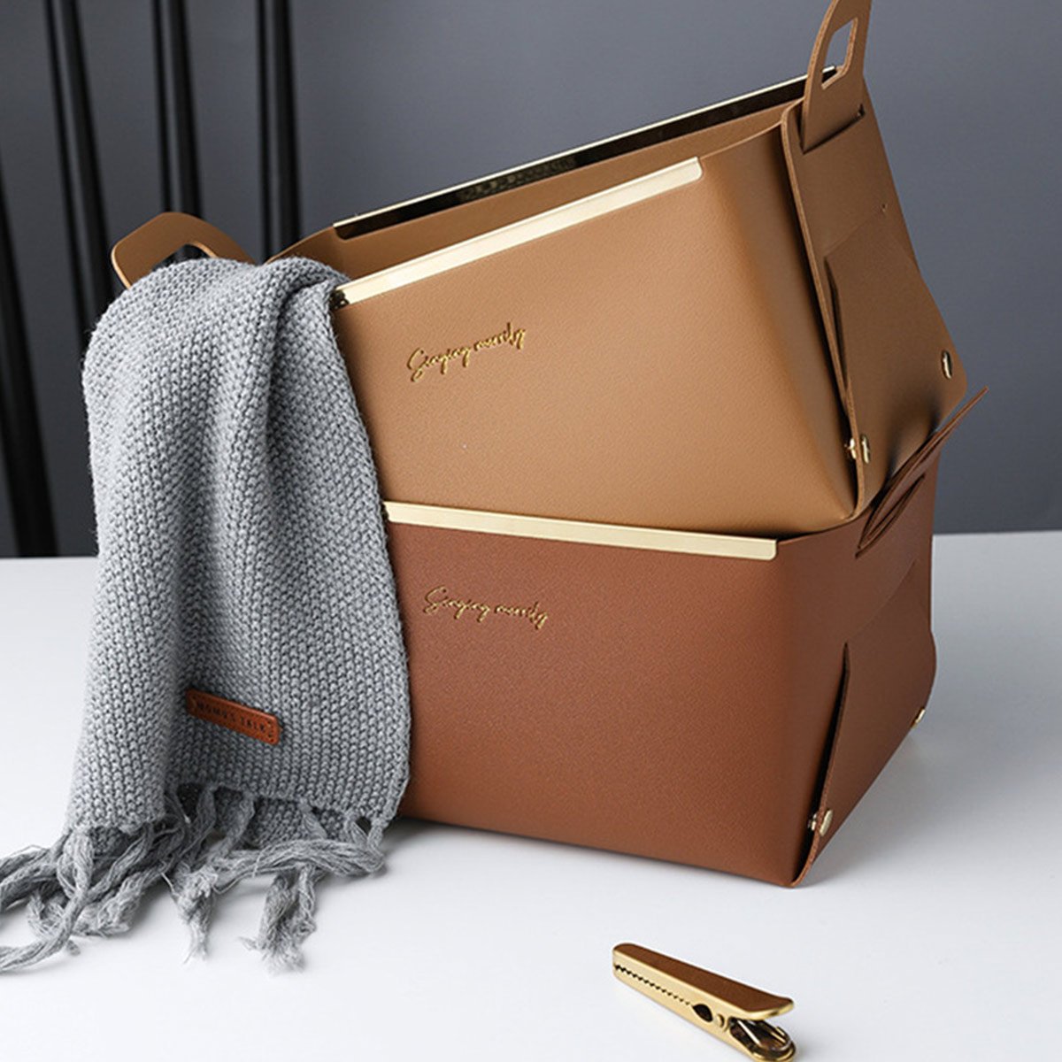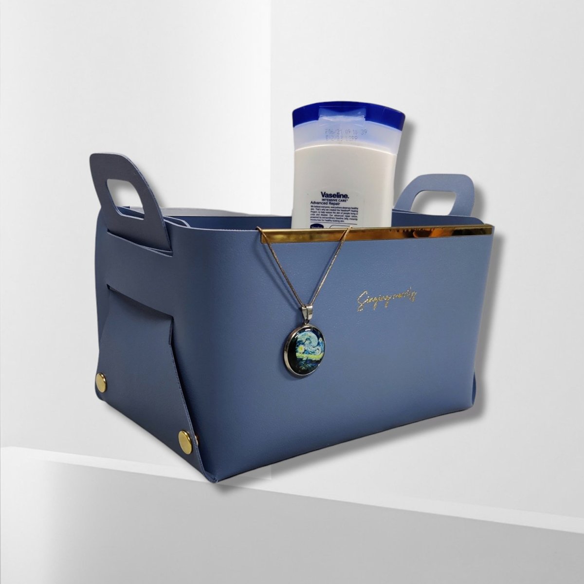Our Collapsible Storage Baskets are the perfect storage solution for all your everyday items like pens, cards, facial masks, medicines, pills, toiletries, facial towels, etc. They are made of superior quality faux leather and have upgraded metal strips and buttons which ensure they remain steady no matter what you put in them.