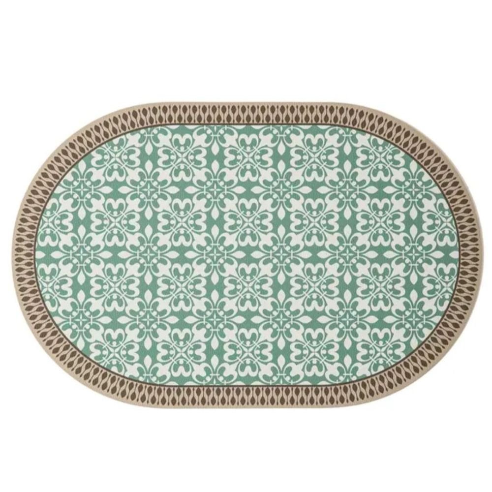 - Inspired by Mediterranean tile art, with Mint-teal floral motif paired with a clean scallop border for a refined, curated look