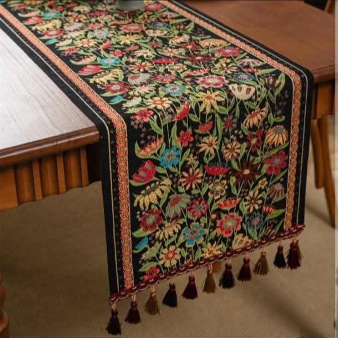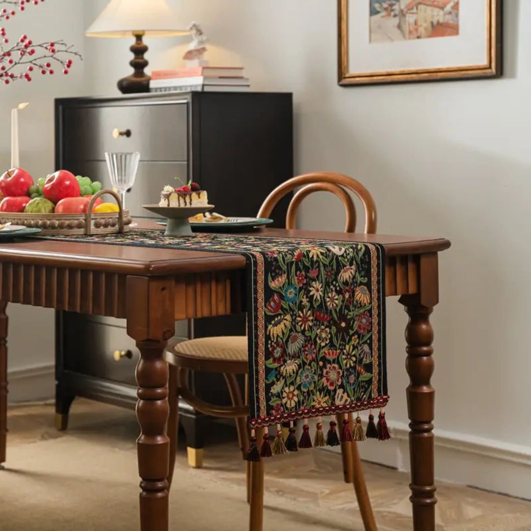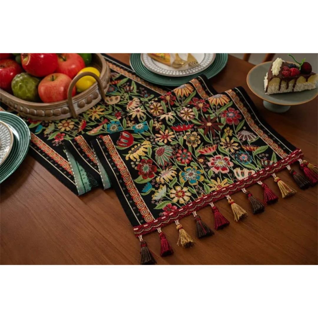 Dine in elegance with our exquisite Enchanted Garden Jacquard Table Runner – a masterpiece of artistry and sophistication. Intricately woven florals and regal tassels come together to create an enchanting tablescape. Whether hosting a grand feast or a cozy dinner, this luxurious accent transforms every meal into a celebration. Add charm, protect your table, and indulge in timeless beauty!