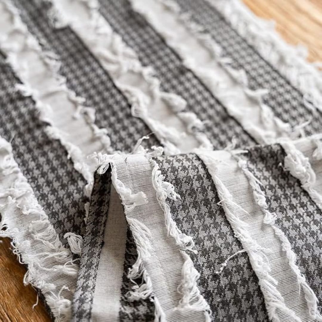 Fringed Striped Farmhouse Style Table Runner