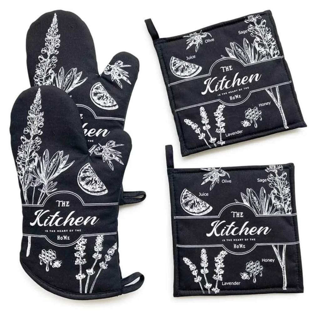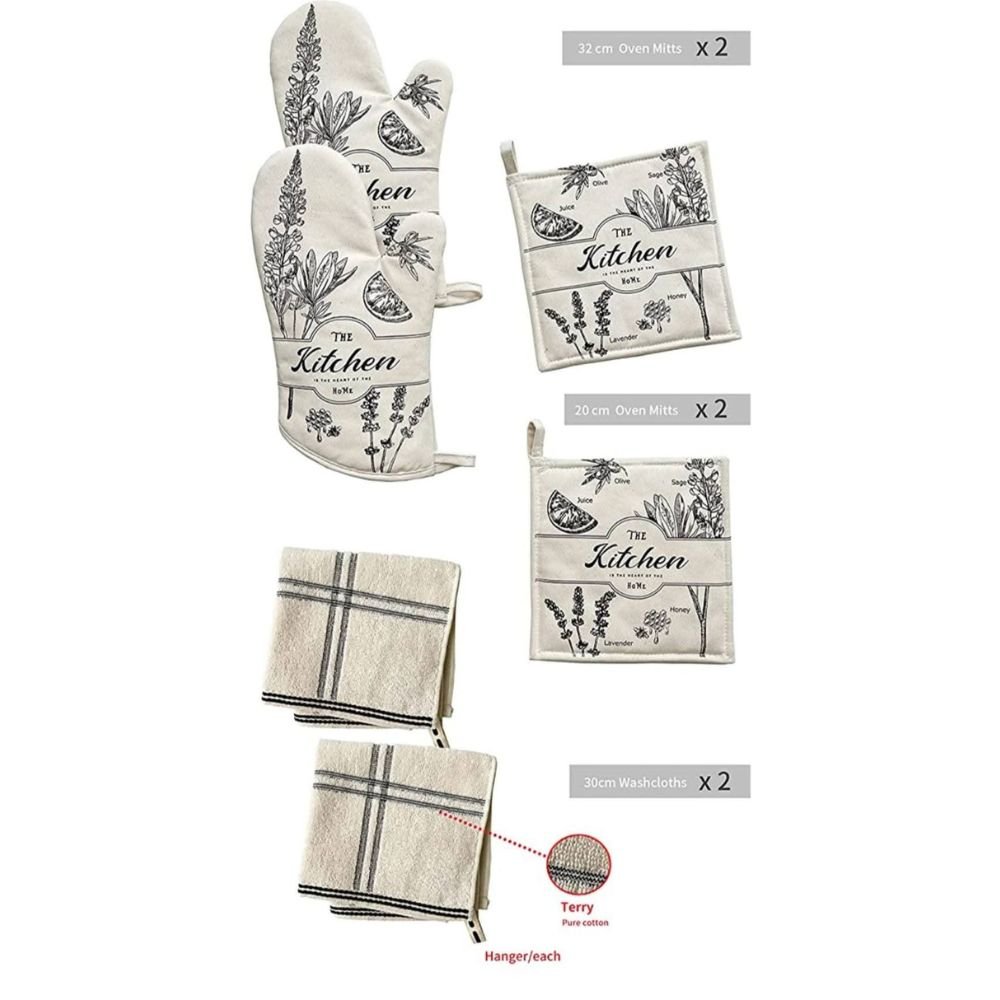 - Matching mitts, potholders, and washcloths designed to bring harmony and elegance to your kitchen space