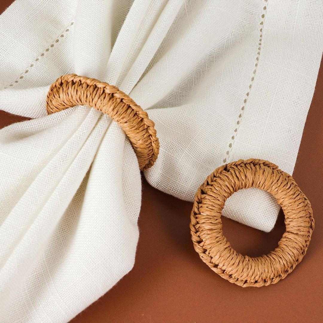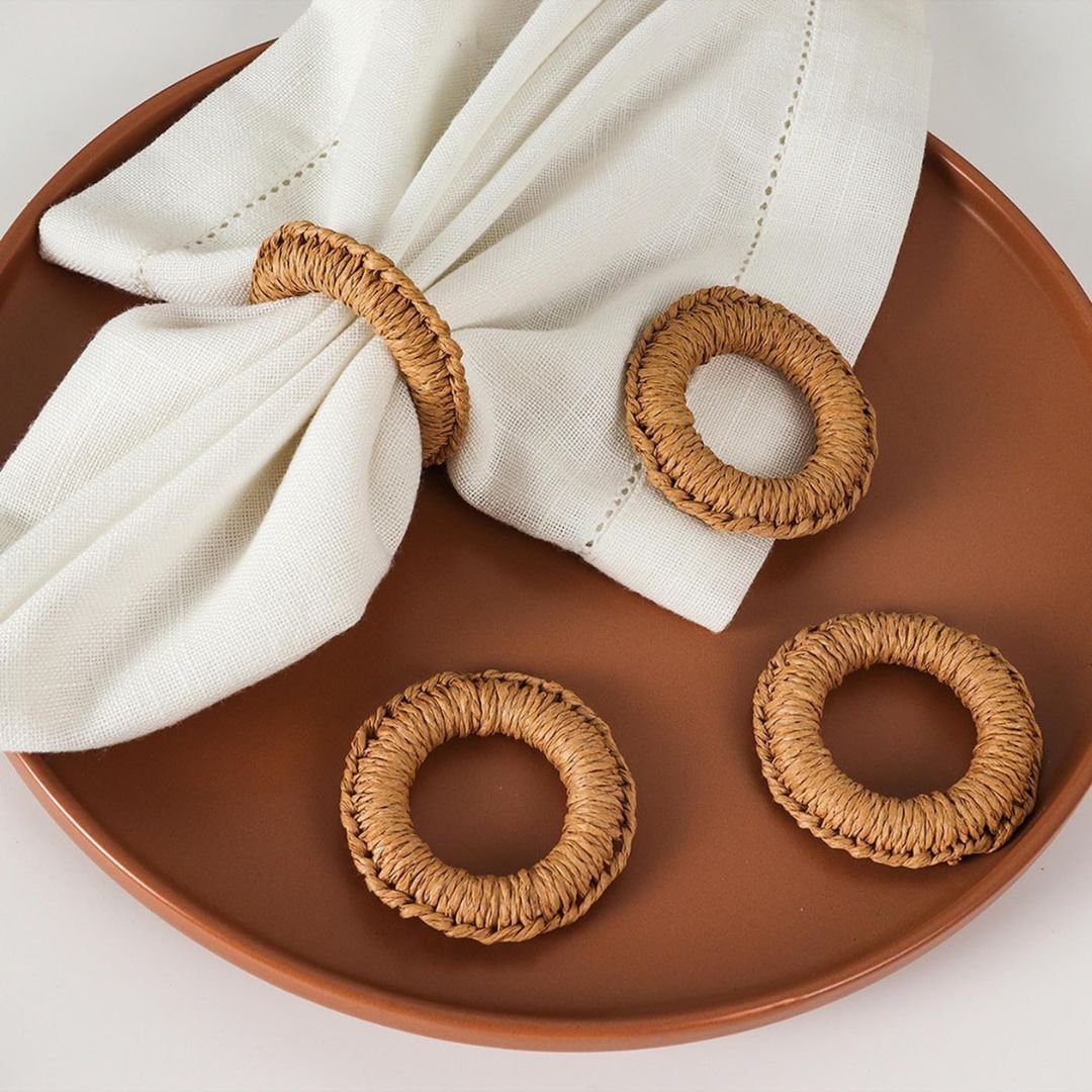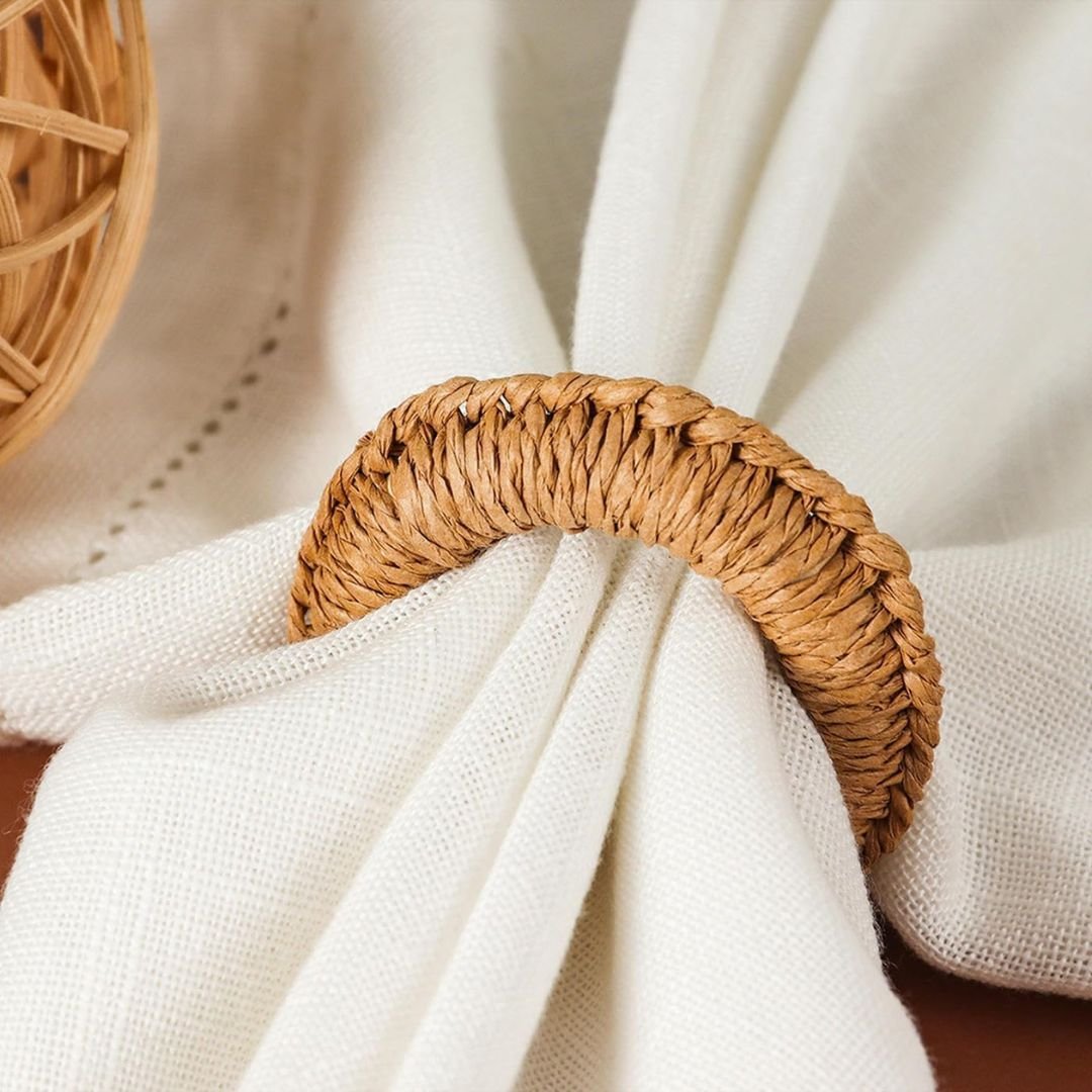 Crafted from hand woven natural material, these napkin rings are not only eco-friendly but also incredibly durable, ensuring they will last for years to come. The intricate weaving technique used to create these rings results in a unique and visually appealing texture that will add a touch of natural beauty to your dining experience.