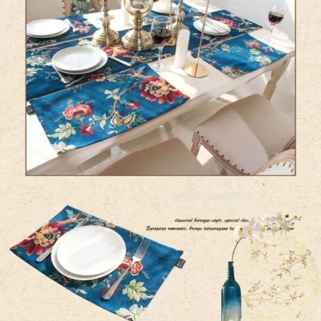 These high quality polyester and cotton blend placemats are perfect for special occasions as well as everyday dining. They give a splash of color but are not flashy, perfectly fitting various decor styles in all seasons. Elegantly set your dining table with our Jacquard Chenille Floral Table Runner and Placemats.