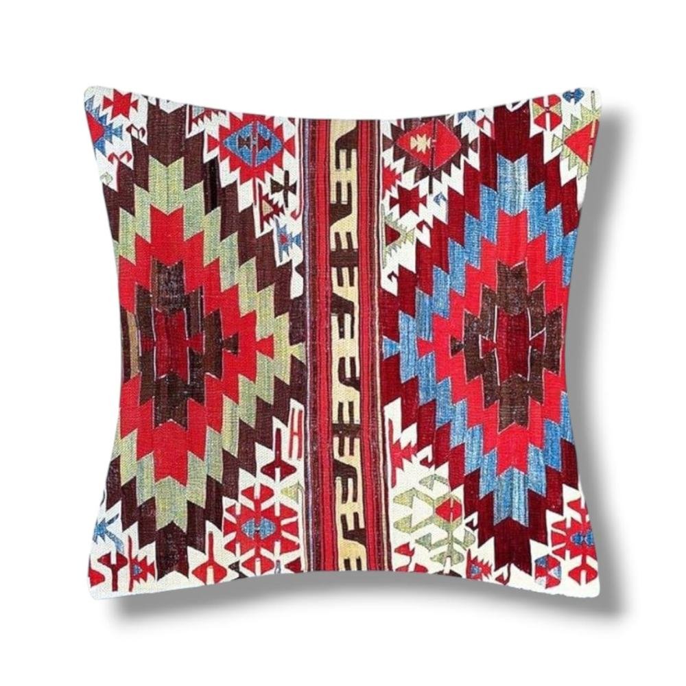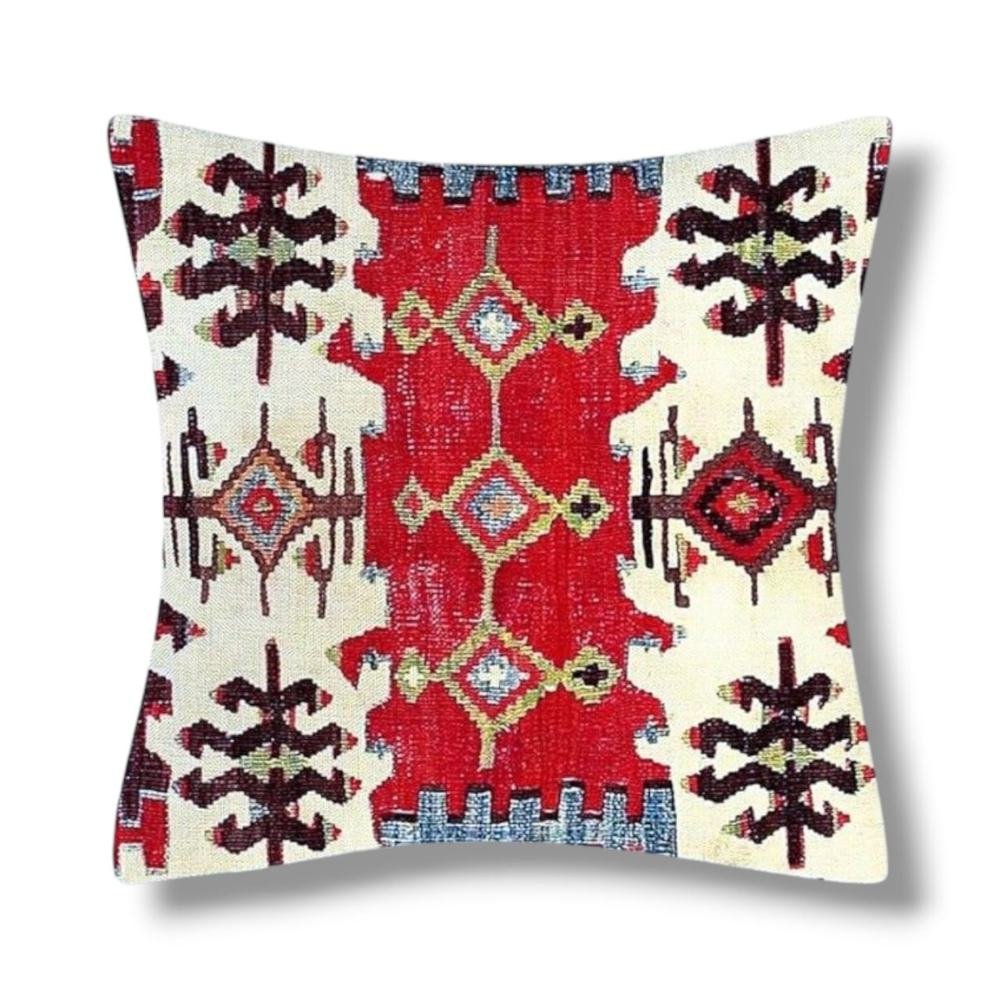 Bring centuries of artisan storytelling into your space with our Kilim Heritage Cushion Covers. Inspired by Anatolian and Central Asian textile traditions, each piece showcases bold tribal motifs, rich earthy hues, and the structured symmetry of folk art. Designed to mimic the tactile beauty of kilims, it adds instant warmth, texture, and cultural depth to couches, beds, accent chairs, or reading nooks—making it the perfect statement layer for any refined interior.
