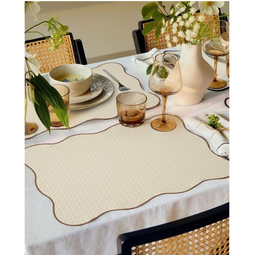 Hosting a dinner or savoring a quiet breakfast? The Maison Scallop Edge Leather Placemats turn every setting into an experience. With their graceful, wavy silhouette, intricate woven texture, and finely embroidered scalloped edges, they embody quiet luxury while protecting your table from heat, spills, and scratches. Designed in versatile tones and a luxe leather finish, they’re perfect for layering with ceramics, florals, or glassware — making every meal feel effortlessly styled.