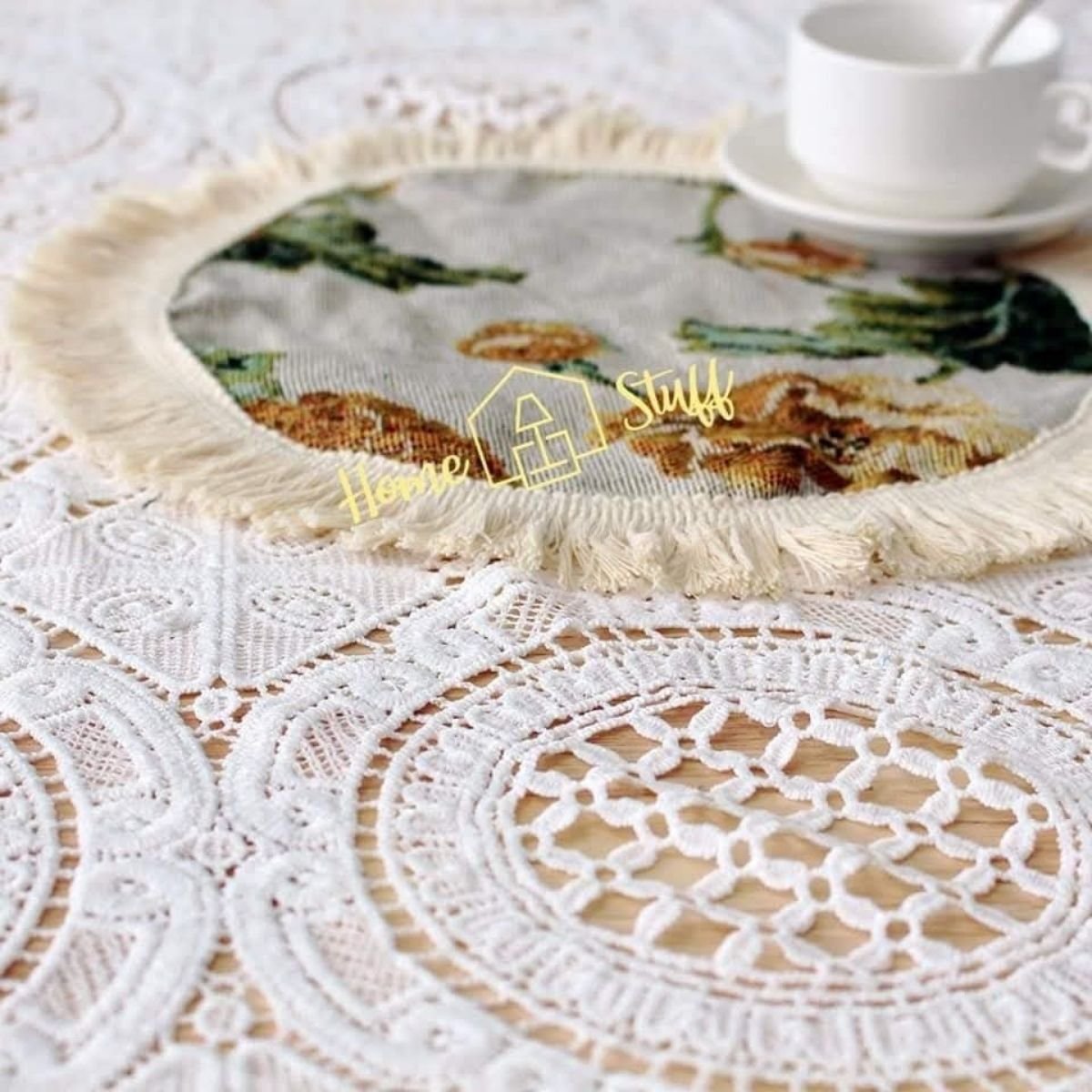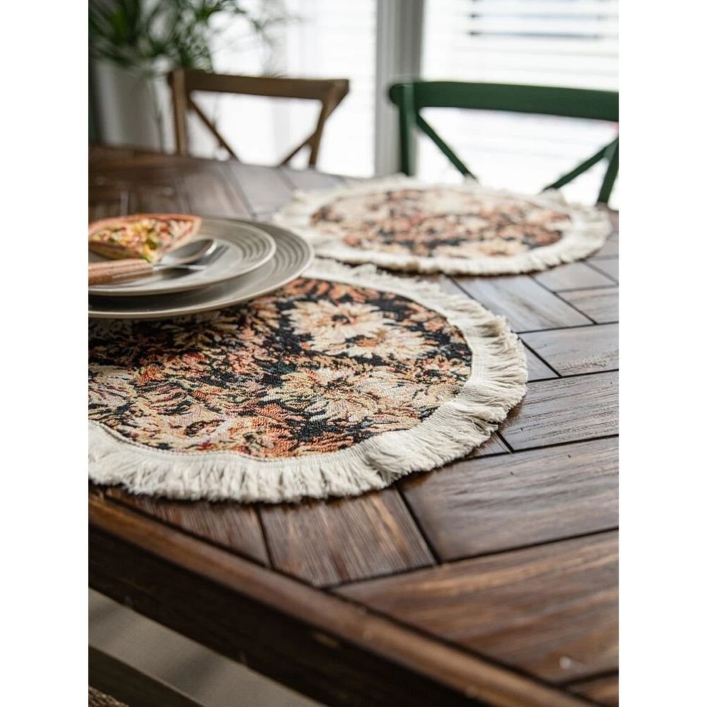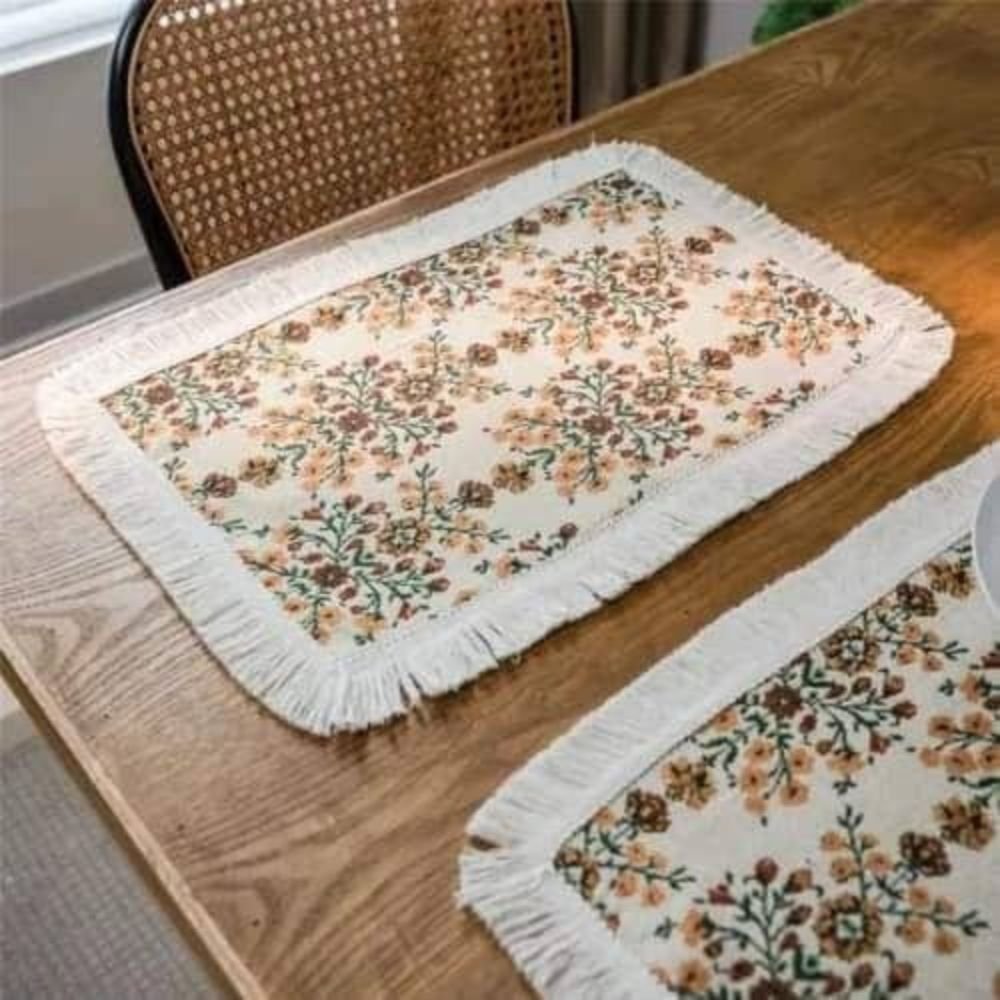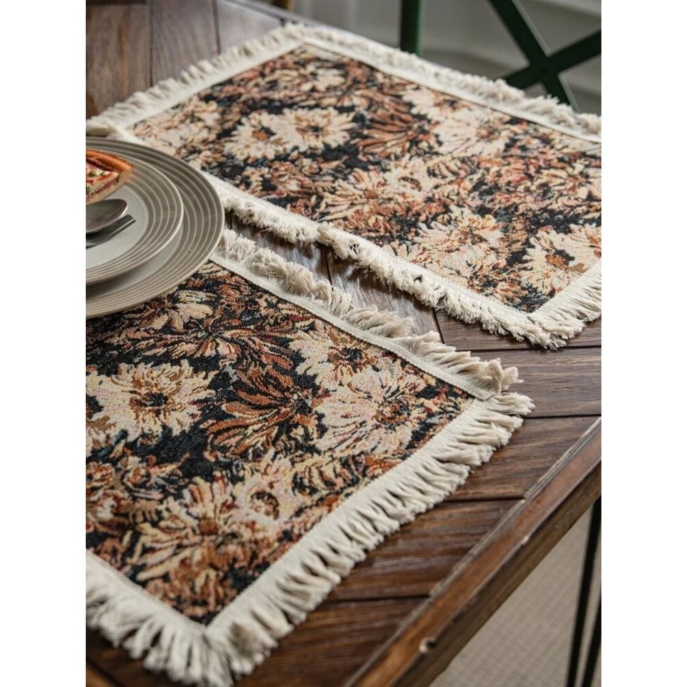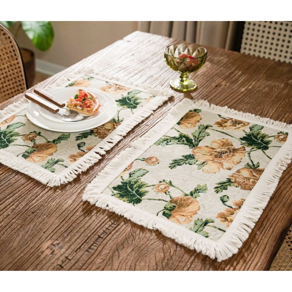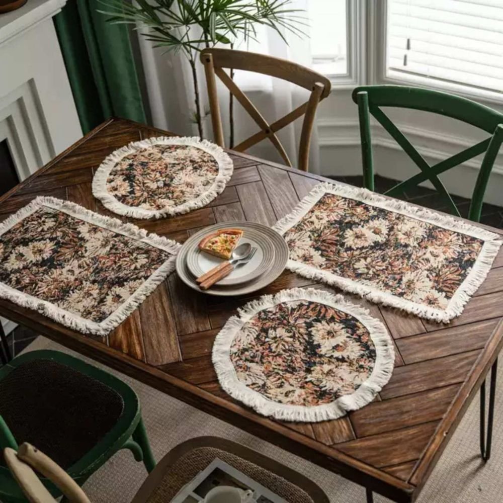 Our Plein Air Botanica Fringe Placemats are a quiet celebration of nature, craftsmanship, and timeless European charm. Woven—not printed—the floral motifs emerge through layered threads, creating a tactile, dimensional surface with a graceful, weighted drape. Brings the calming presence of nature indoors, embodying the idea of “bringing the garden to the table.