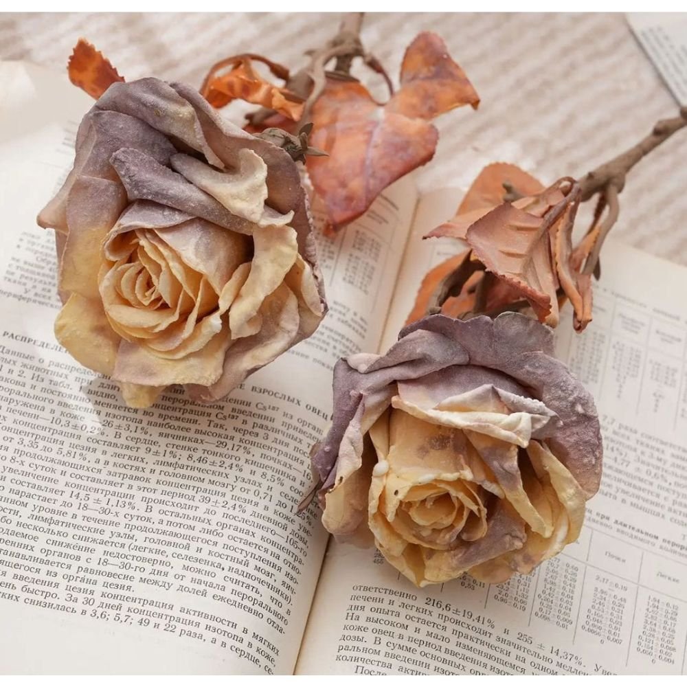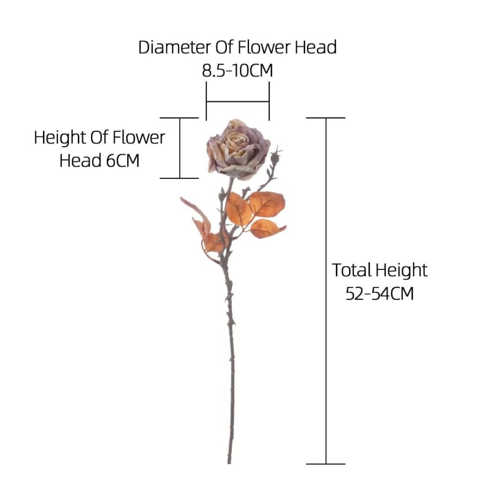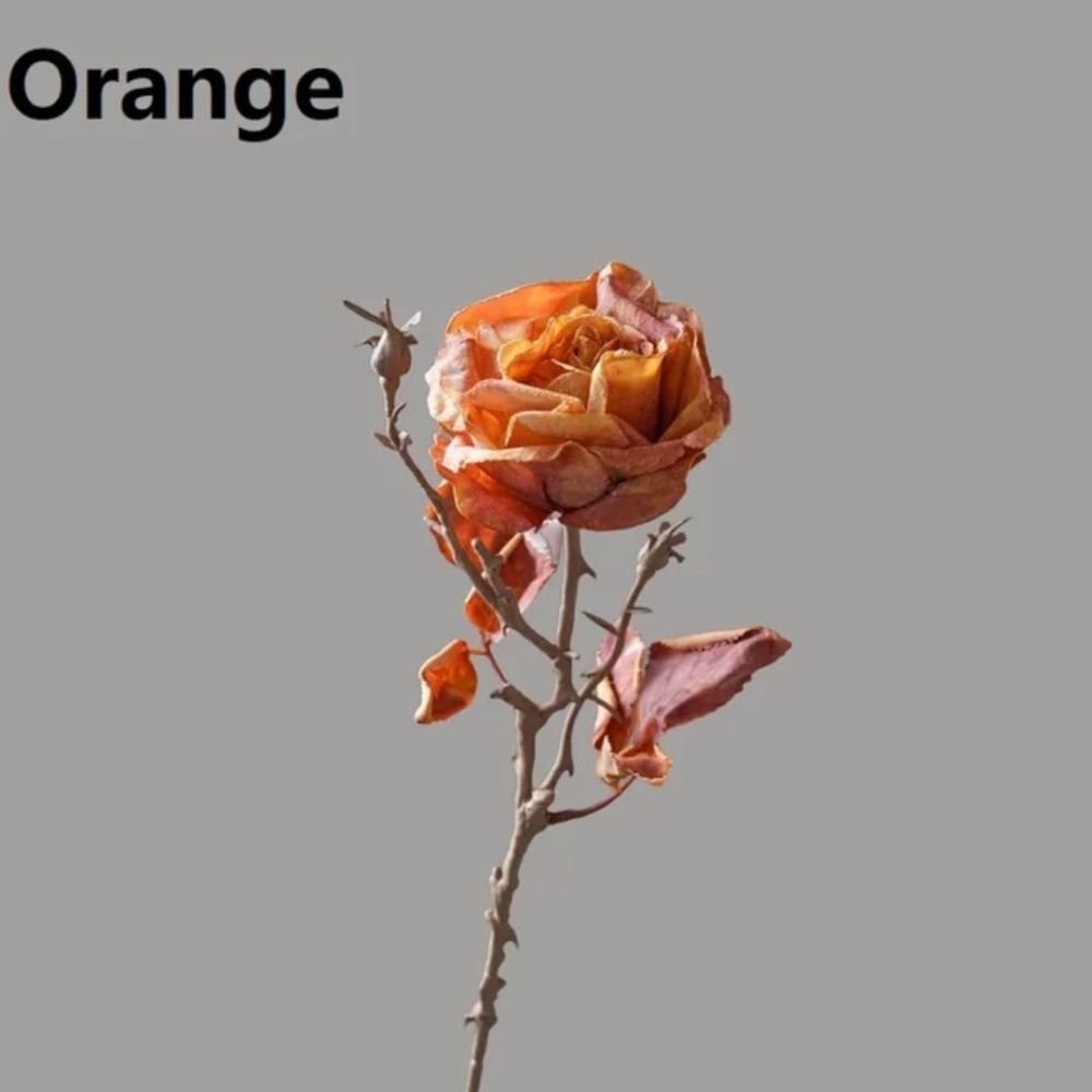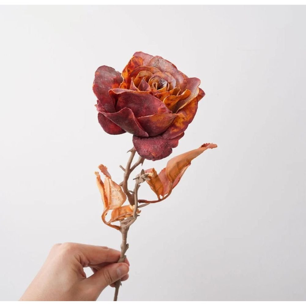 These Preserved Promise Artificial Dried Roses are not simply decorative florals — they are a study in realism.  Each petal carries the quiet evidence of time: gently curled edges, faint crisping, subtle darkened contours, and nuanced pigment transitions that mirror naturally air-dried blooms. The matte finish removes any artificial sheen, allowing the surface to breathe with authenticity. Soft speckling, delicate distressing, and organic tonal fading replicate the kind of botanical aging only nature can compose. Even the stems hold texture and irregularity — never overly perfect, never synthetic in appearance.