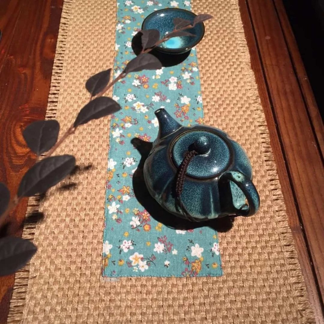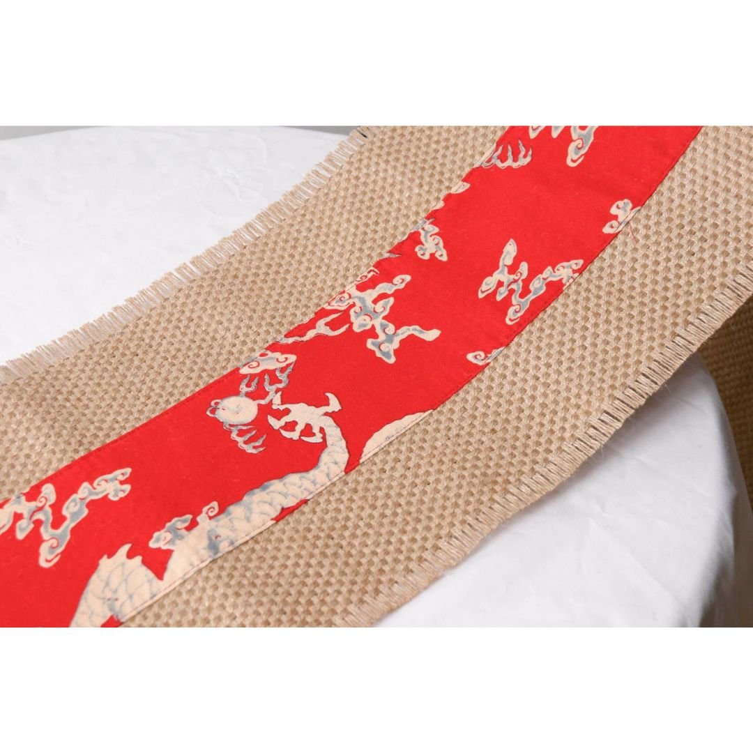 Want to give your room a warm and earthy look? This Raw Edge Jute Table Runner will effortlessly complement your space, creating a rustic look. The printed cotton fabric sewn on the jute with topstitching makes it stand out from other jute table runners. It’s not only perfect for regular use but also a lovely choice for Sunday brunches with friends or weeknight family dinners.