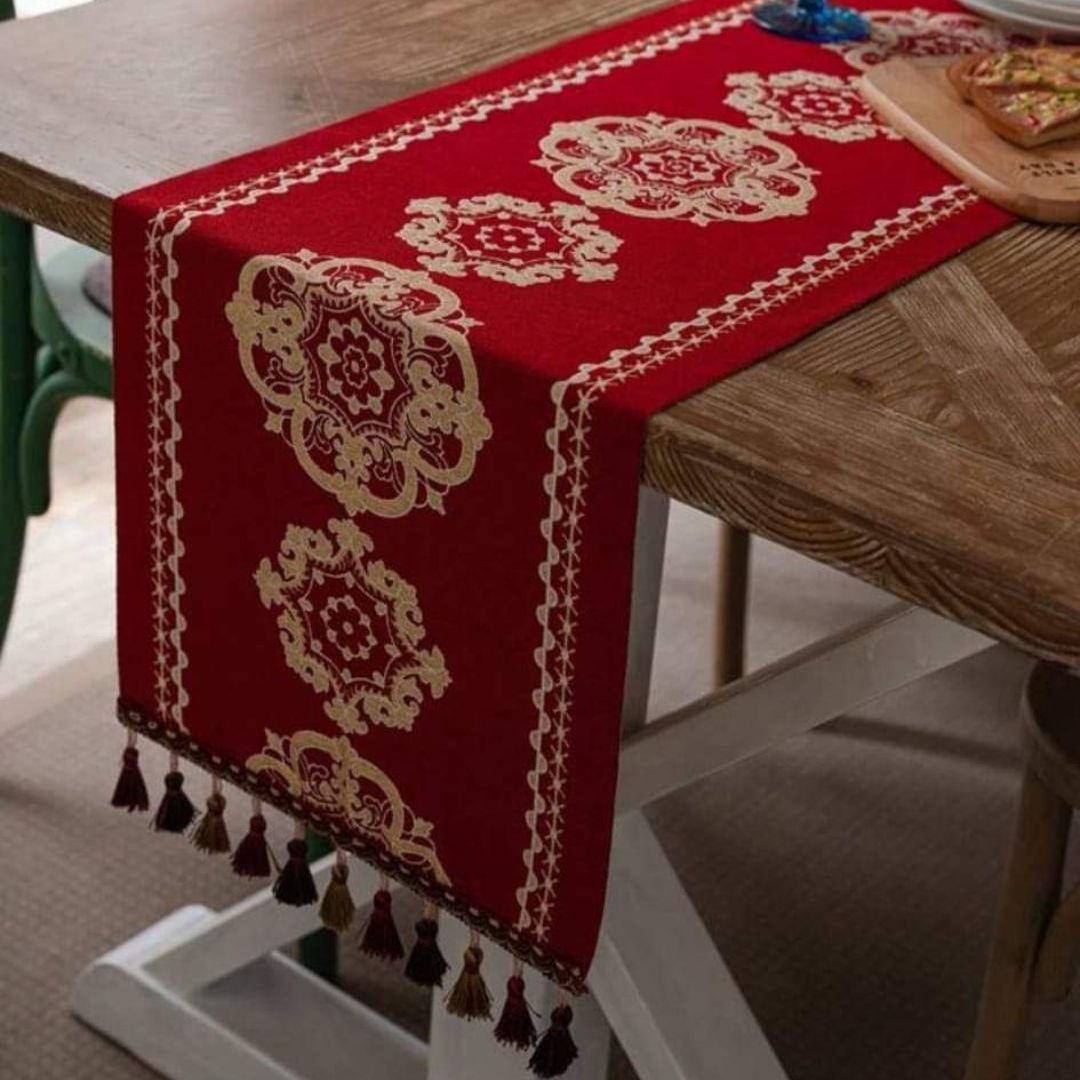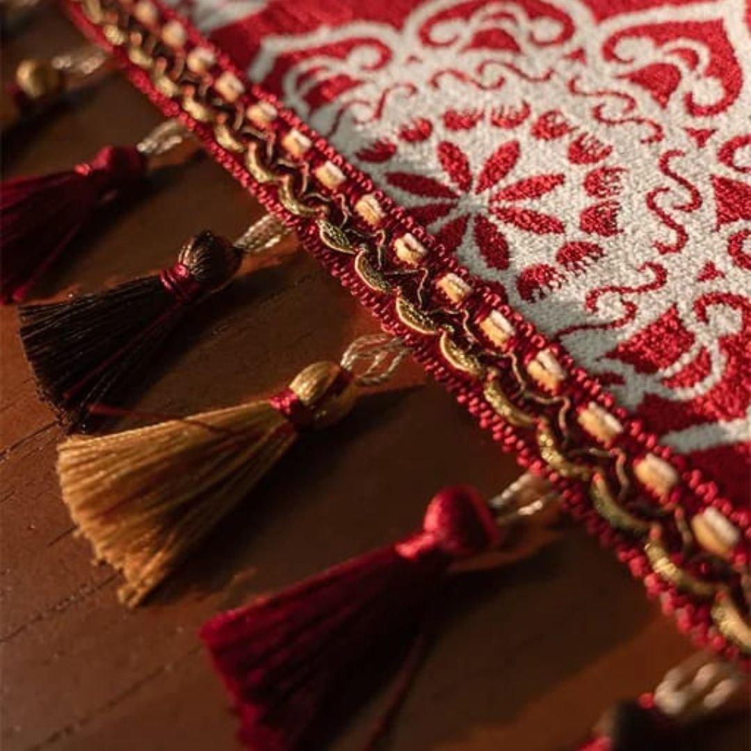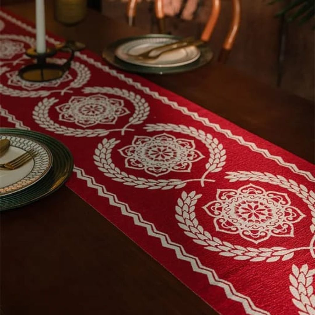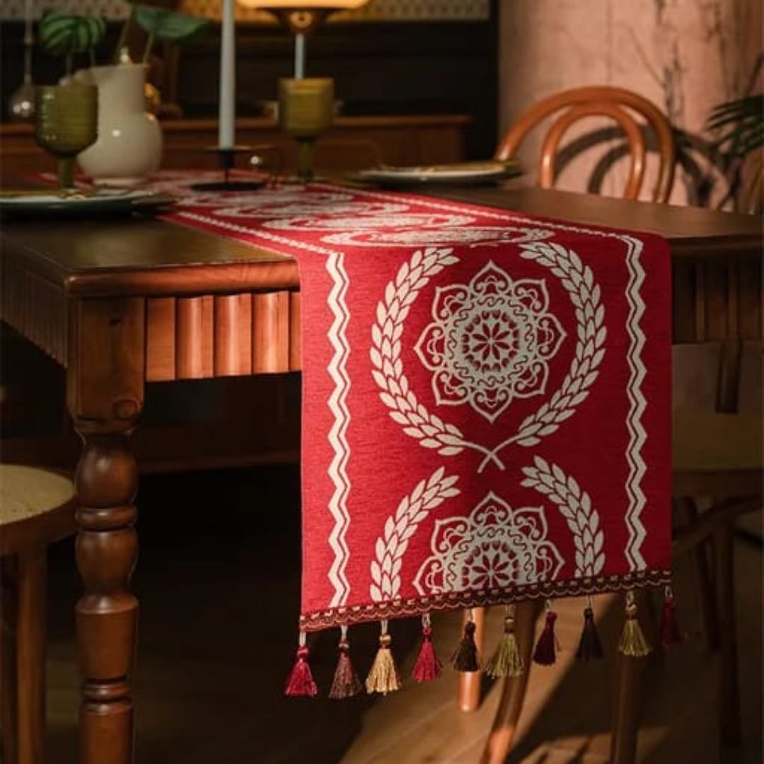 Red Yarn-Dyed Jacquard Table Runner