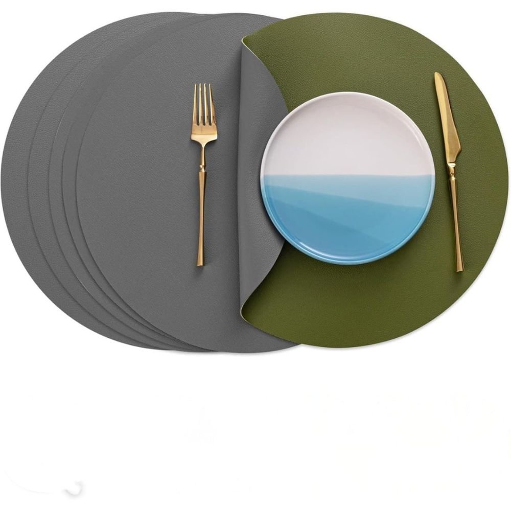 Why settle for one look when you can have two? Elevate every meal with our Round Double Tone Leather Placemats crafted to match your mood, season, or setting in a single flip. Whether it’s a festive dinner or a casual brunch, the dual tone design makes coordinating with your crockery and décor effortless. Heat resistant, stain-proof, and wipe-clean—these placemats do more than just look good. They protect your table from hot dishes, spills, and scratches while adding a refined touch to every setup. Style smarter and dine better, just by flipping with ease.