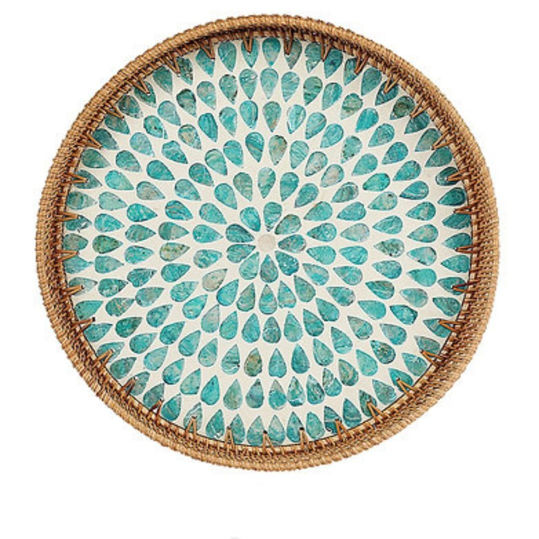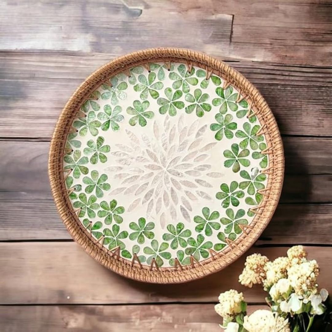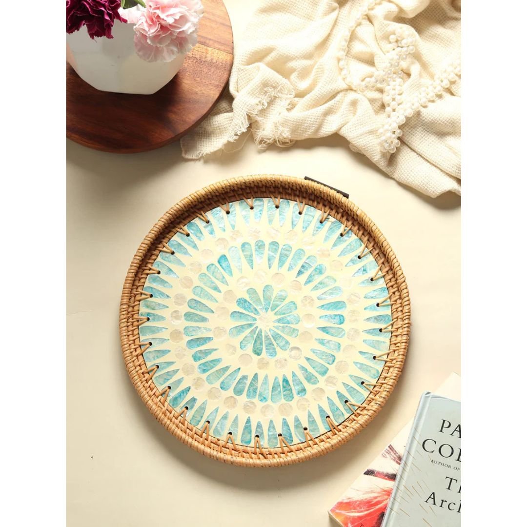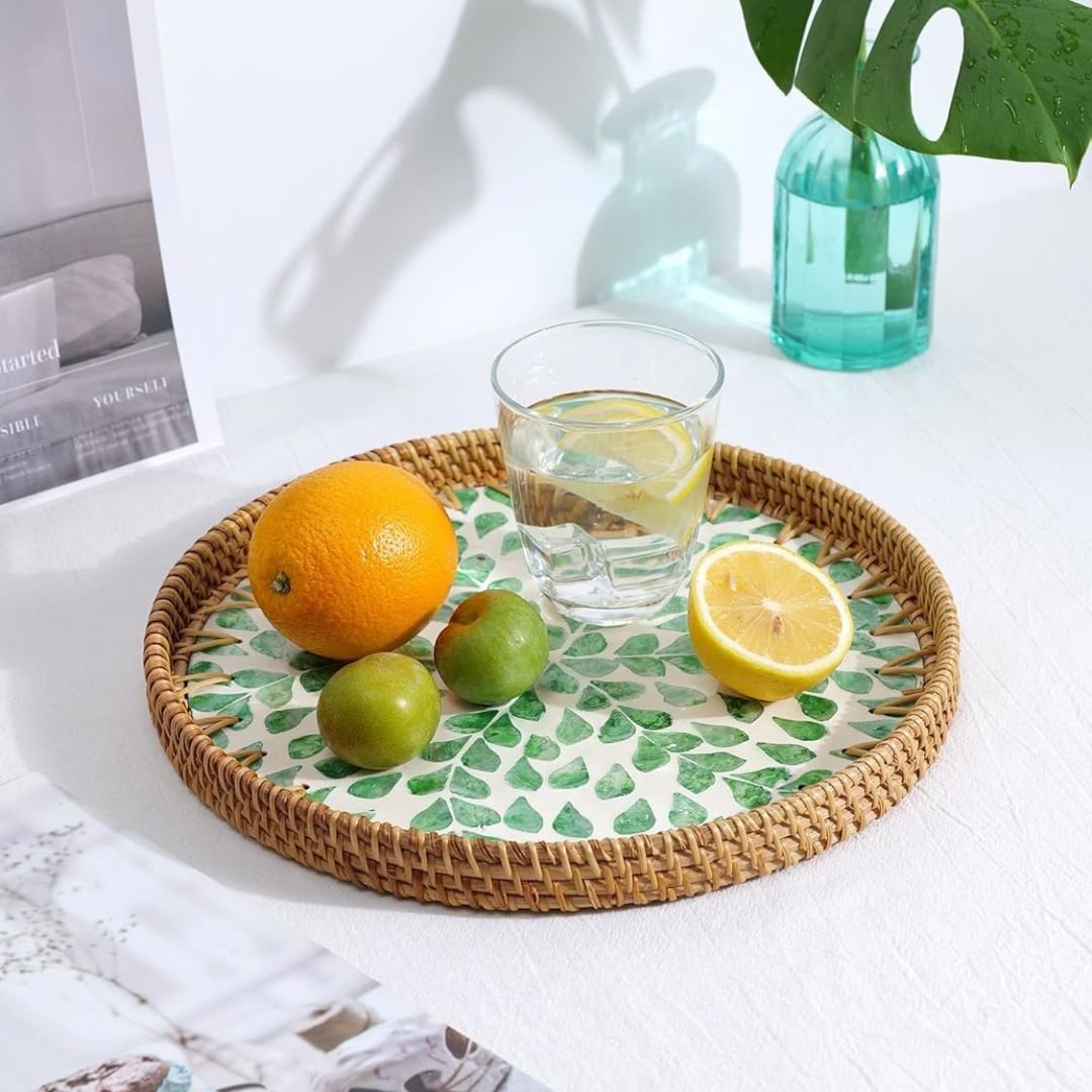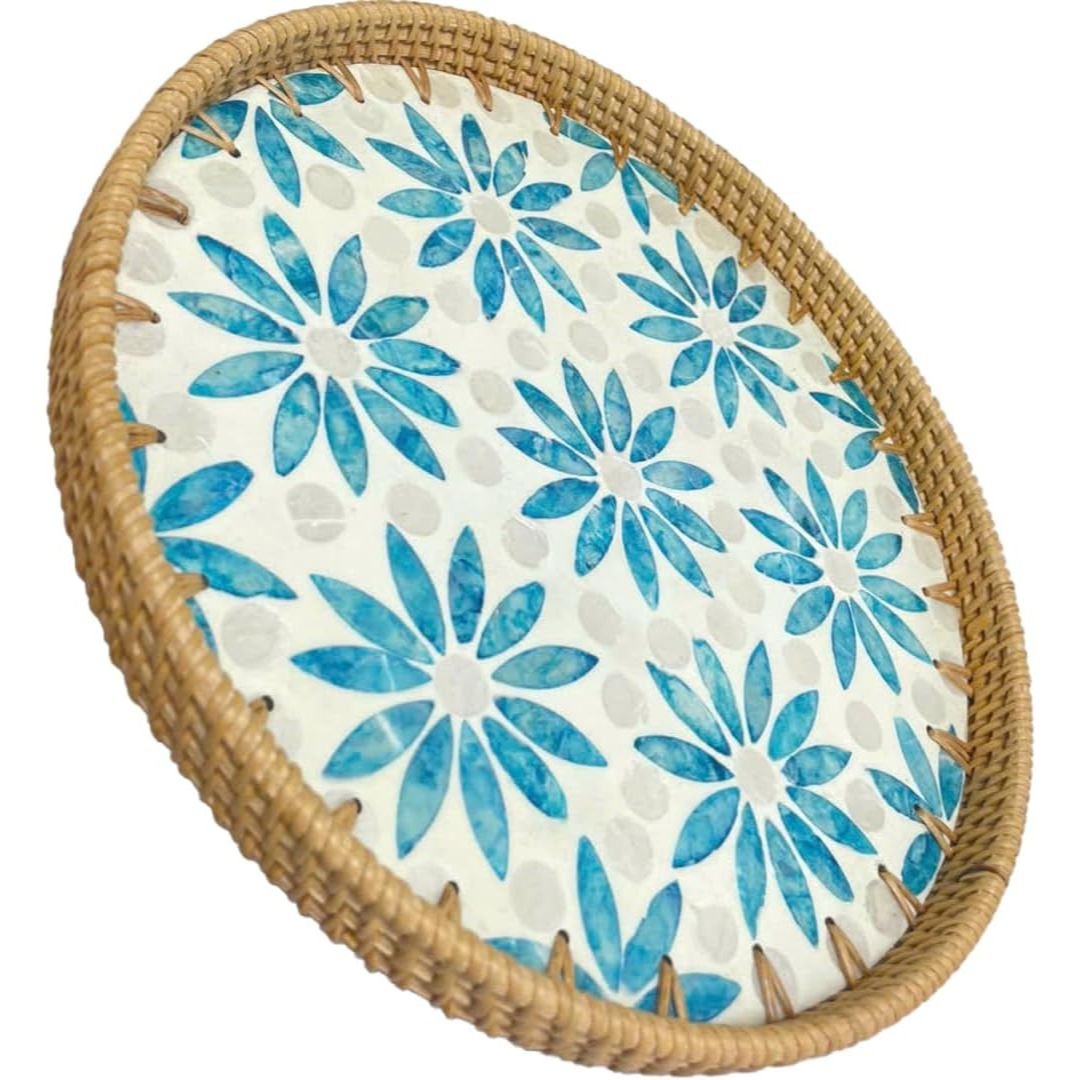 Round Pearl Inlay Rattan Trays
