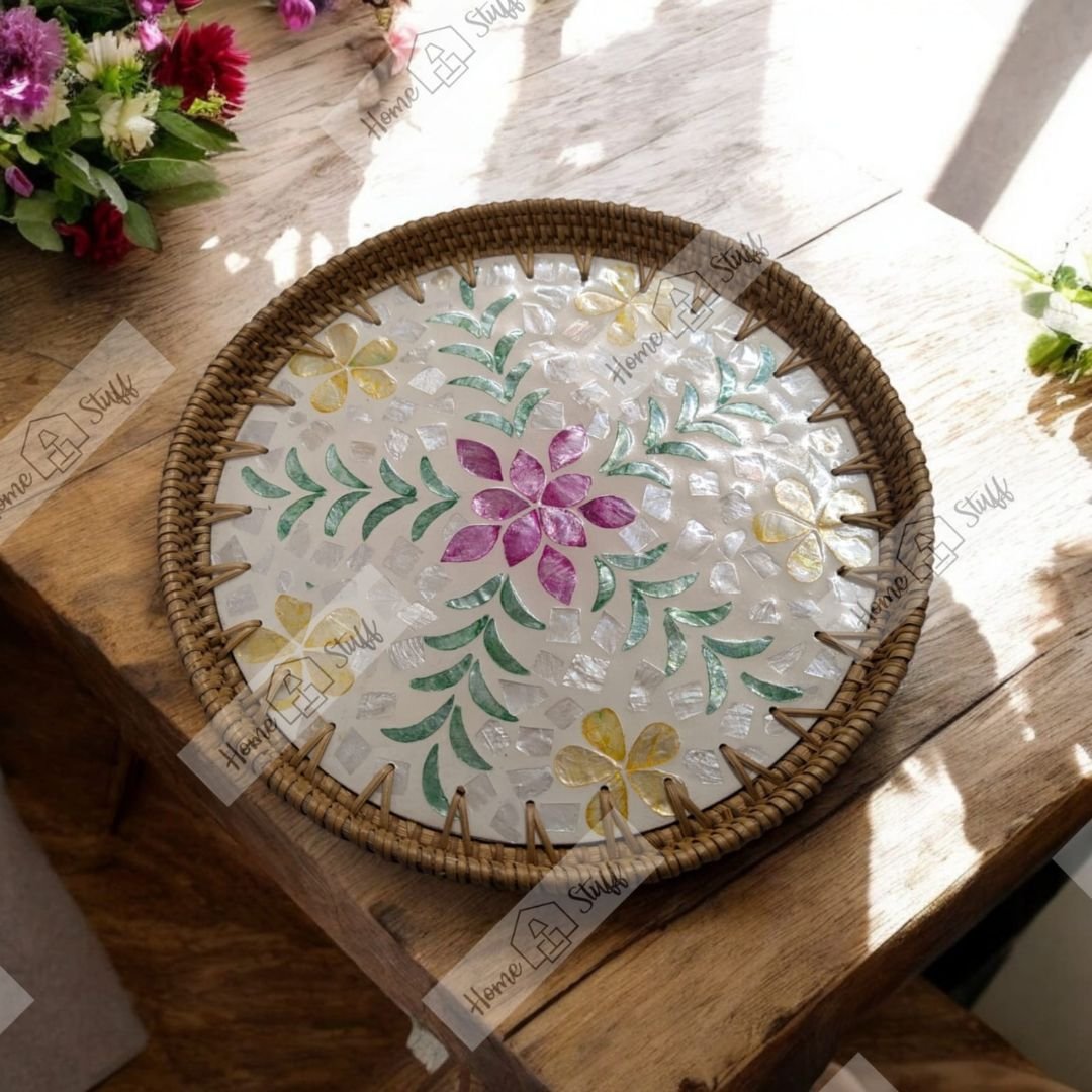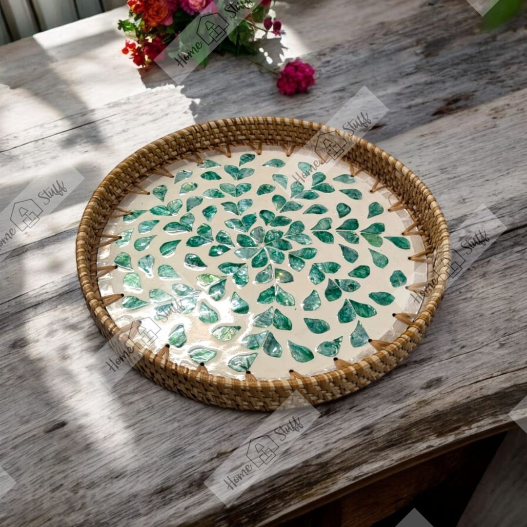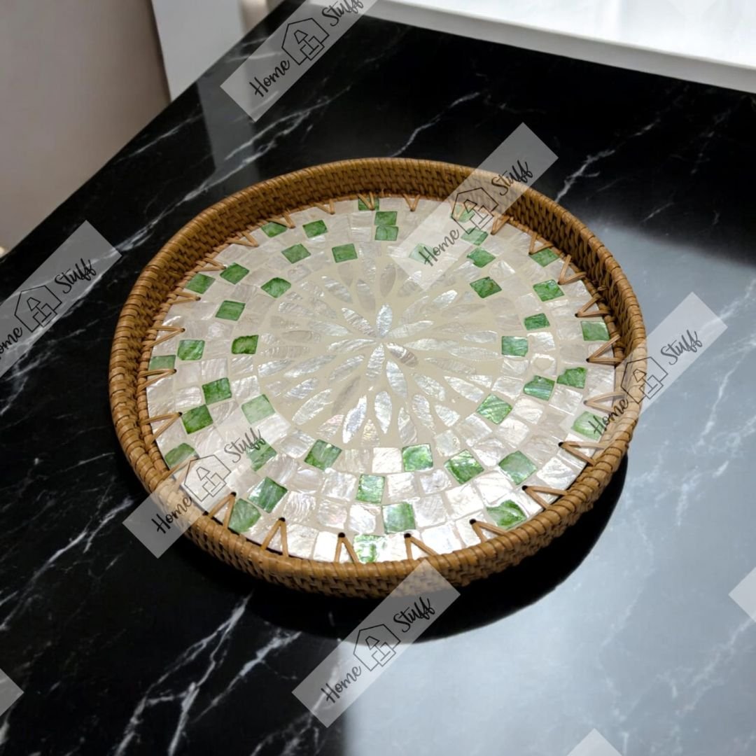 We get our Pearl Inlay Rattan Trays straight from the craft villages. As soon as they finish crafting these beautiful trays, they get sent to our Home Stuff warehouse by air. You can rest assured you’re getting the 100% authentic handcrafted products as you would in any authentic stores in the world!