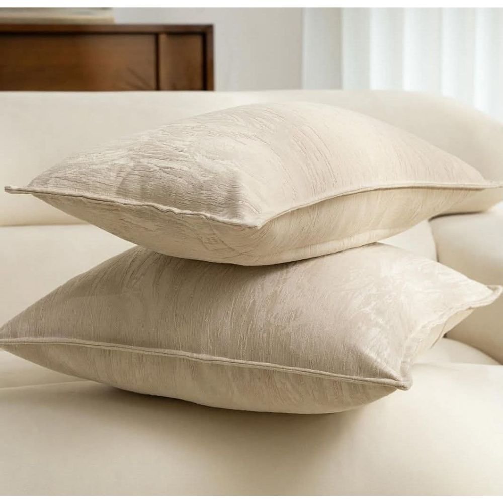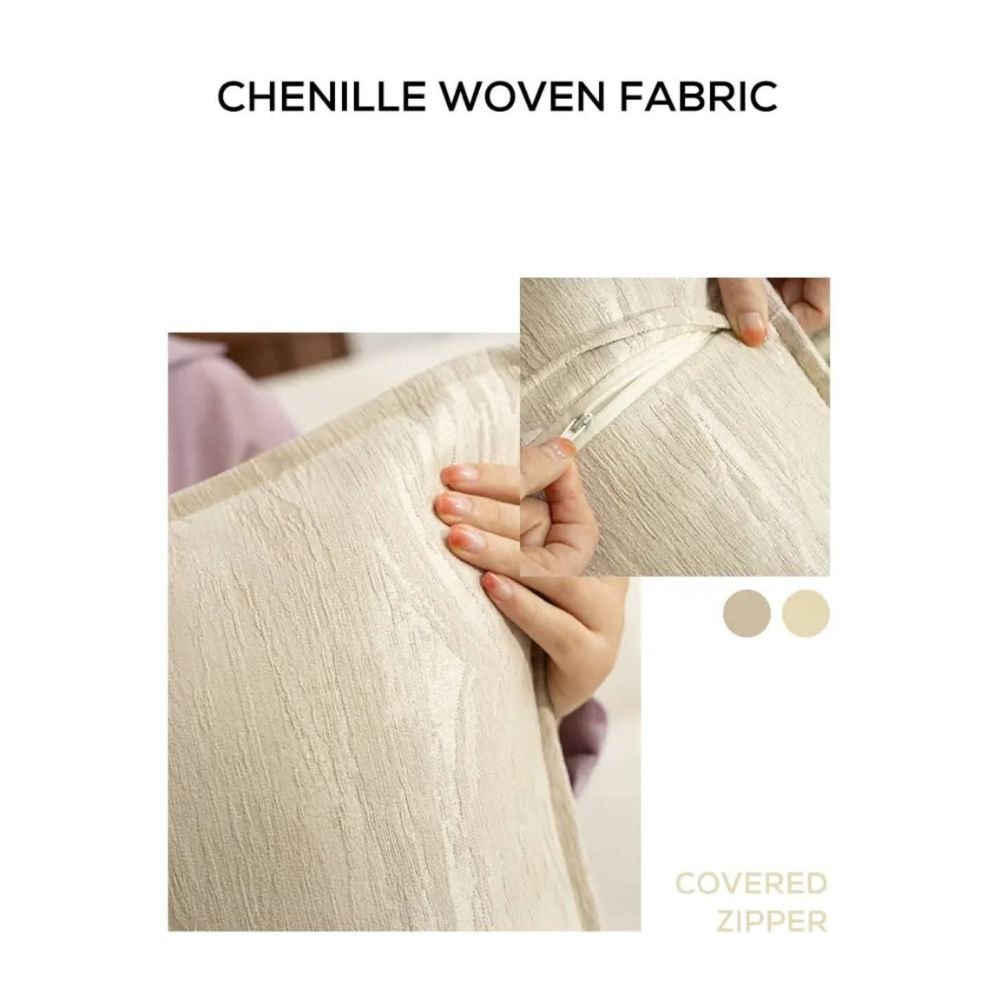 Upgrade the vibe instantly with the Serene Mirage Cushion Covers. It is crafted to bring a subtle, hotel-suite calm into your everyday living. To start with, it features a beautifully textured chenille weave that catches and softens natural light — creating a warm, serene glow along with a subtle sheen and raised woven pattern. Just imagine cozy evenings, quiet mornings, and refined comfort, curated for homes that appreciate gentle luxury and effortless elegance. Furthermore, it is made up of Polyester (primary fiber) for durability, wrinkle resistance, and easy care, and Cotton to add softness and a more natural feel. Moreover, it is ideal for neutral interiors, intimate reading corners, lounge chairs, window-side nooks, and living rooms, infusing them with seamless sophistication.