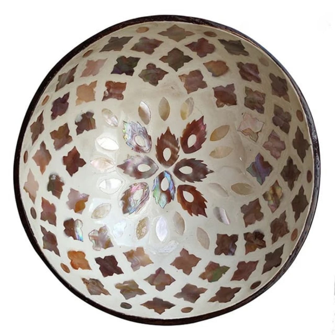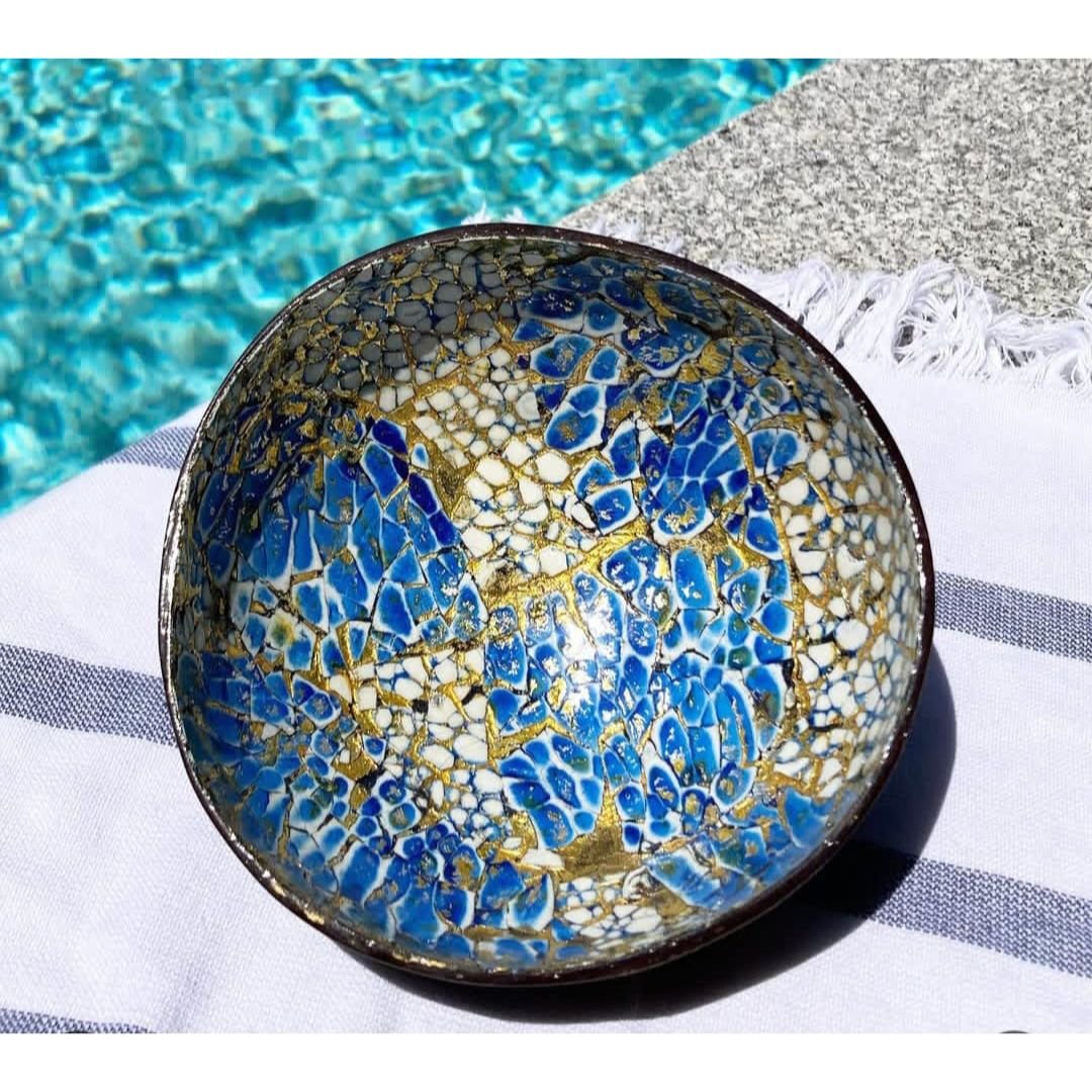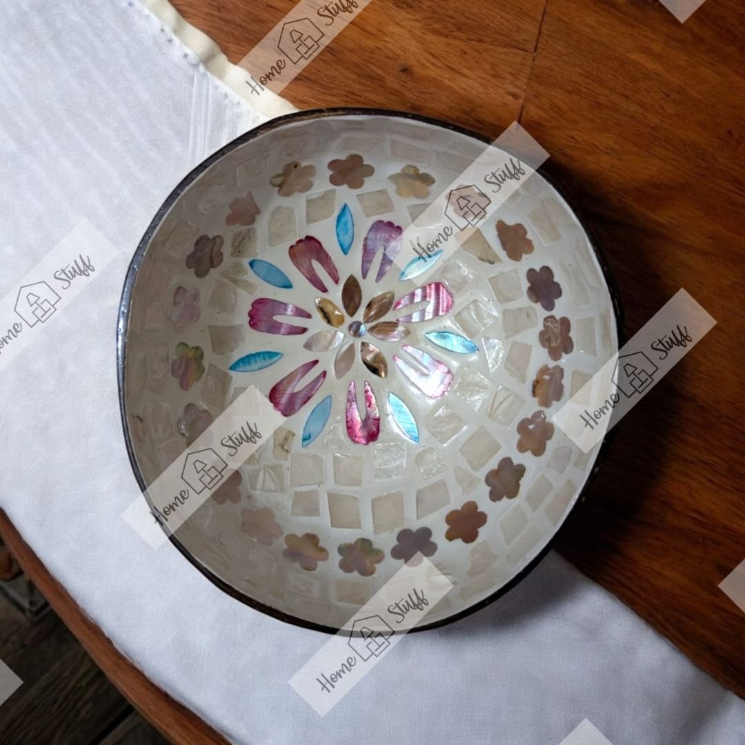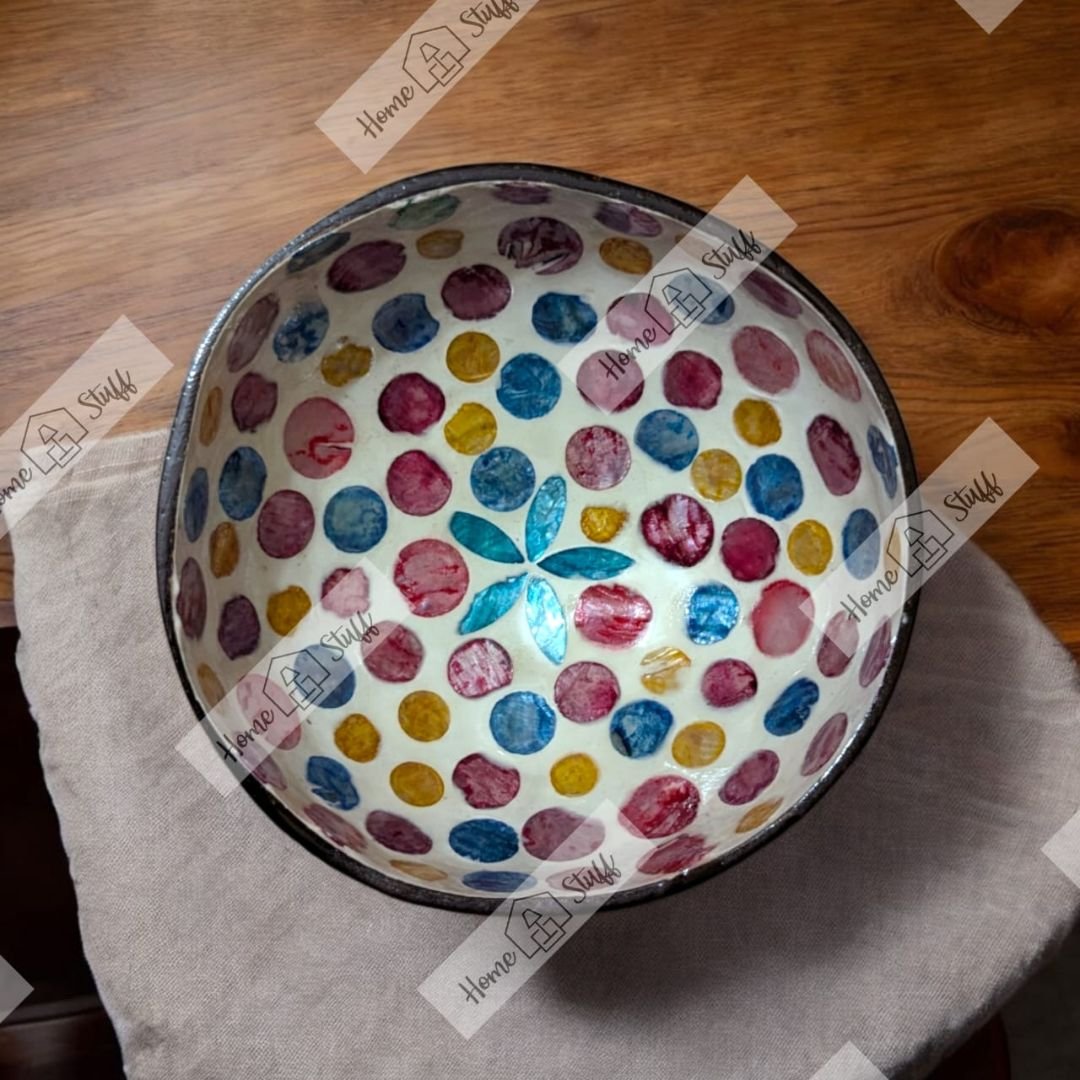 Add a pop of color to your space with our Small Coconut Bowls. These bowls are perfect for serving snacks/desserts, using as decorative pieces, or as organizers to store small items. The intricate mosaics inside make them stand out from any other serving/decorative bowls.