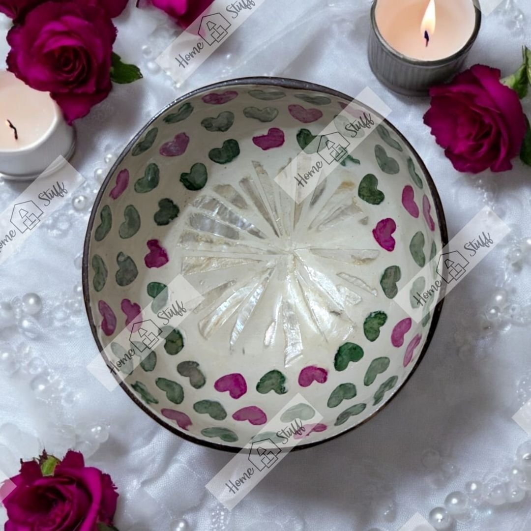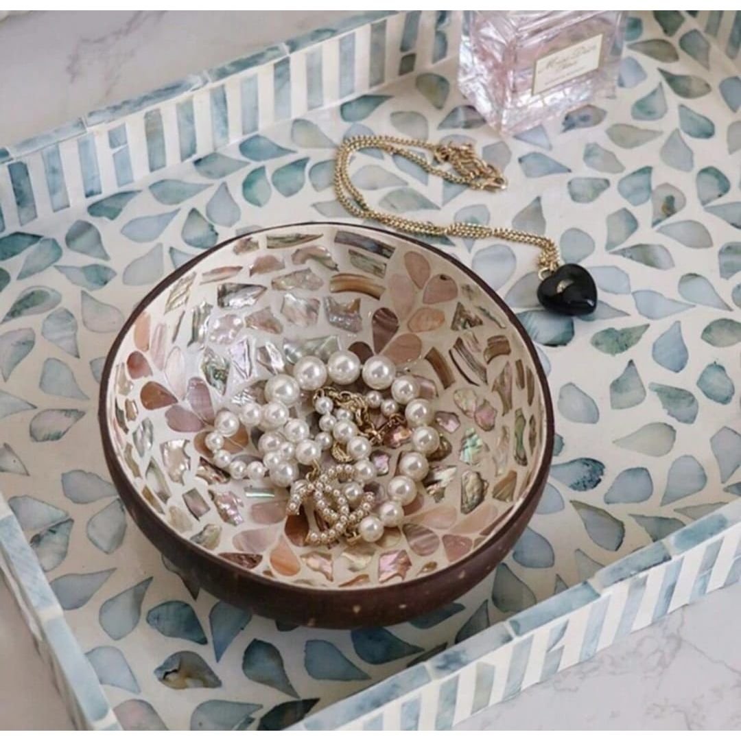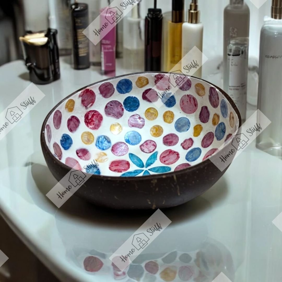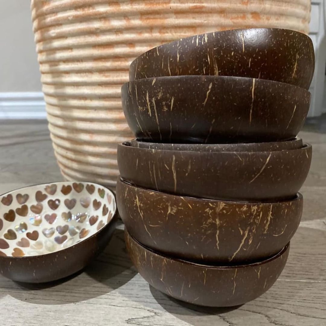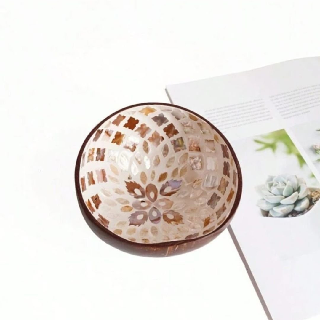 Add a pop of color to your space with our Small Coconut Bowls. These bowls are perfect for serving snacks/desserts, using as decorative pieces, or as organizers to store small items. The intricate mosaics inside make them stand out from any other serving/decorative bowls.