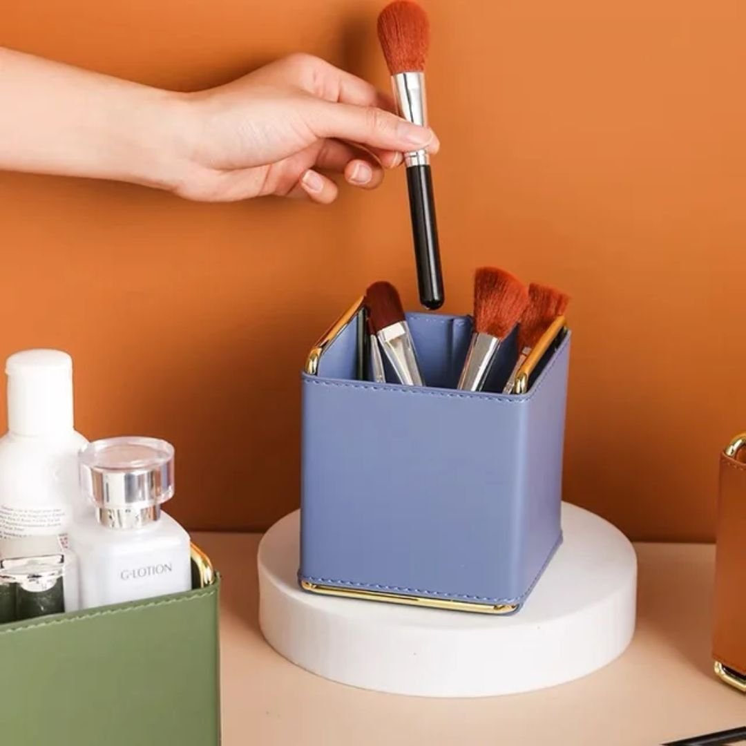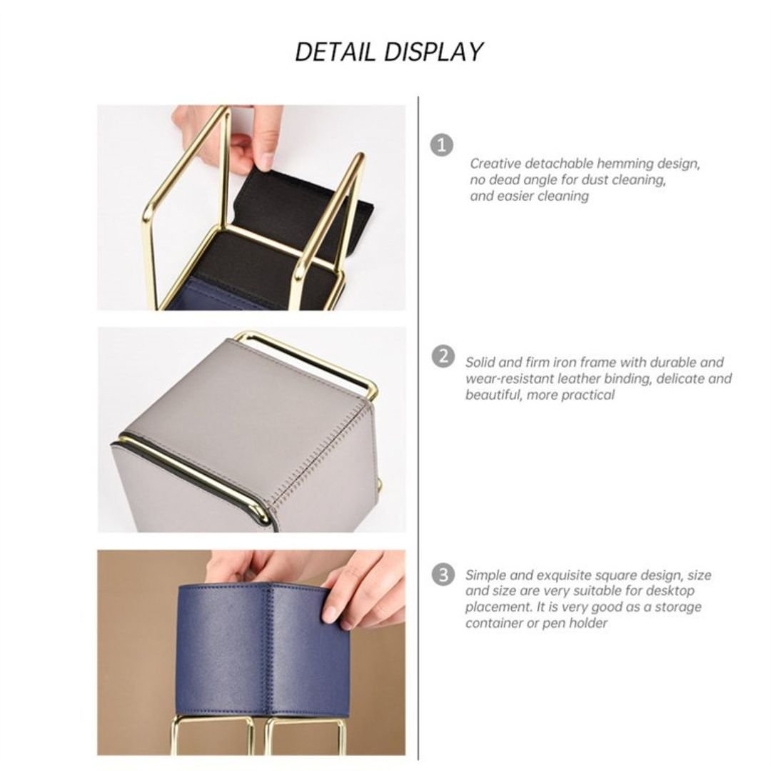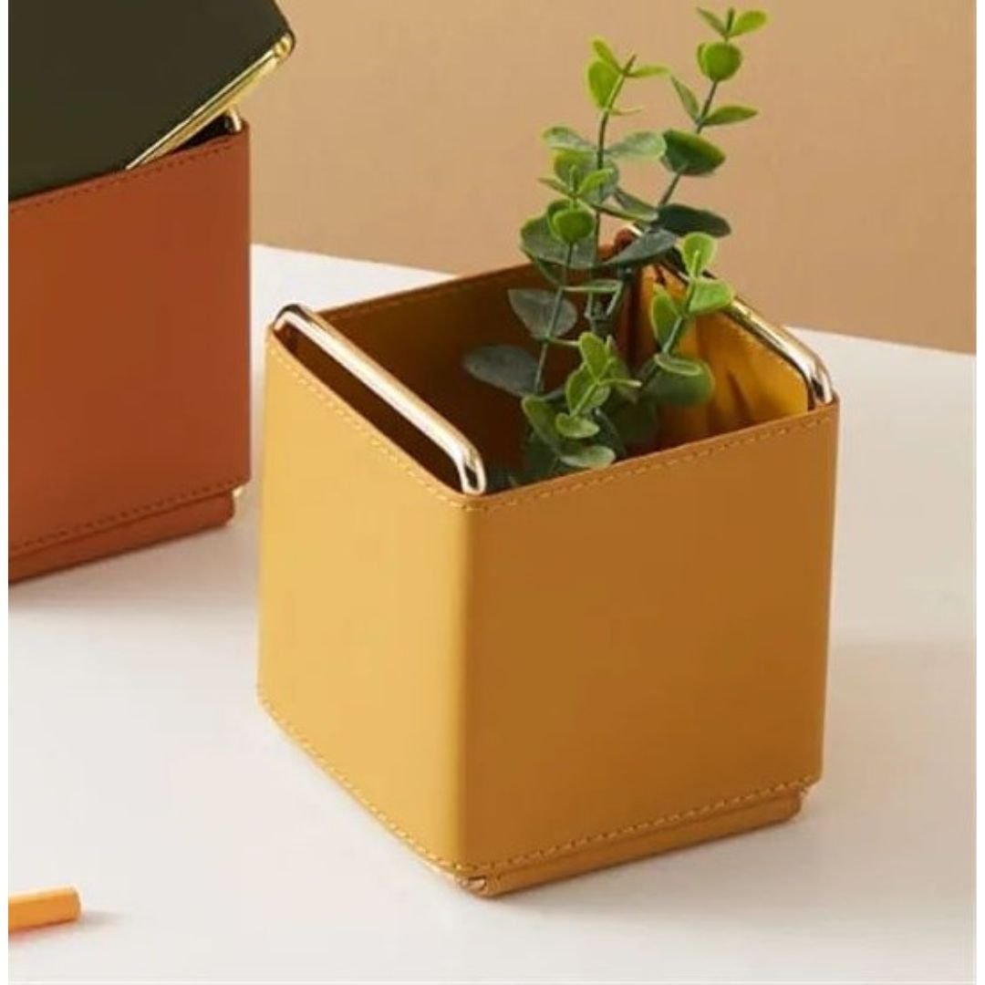 Create a systematic arrangement for your essential items such as makeup, pens, jewelry, cosmetics, sticky notes, paperclips, and other supplies with our Small Leather Tabletop Organizers.