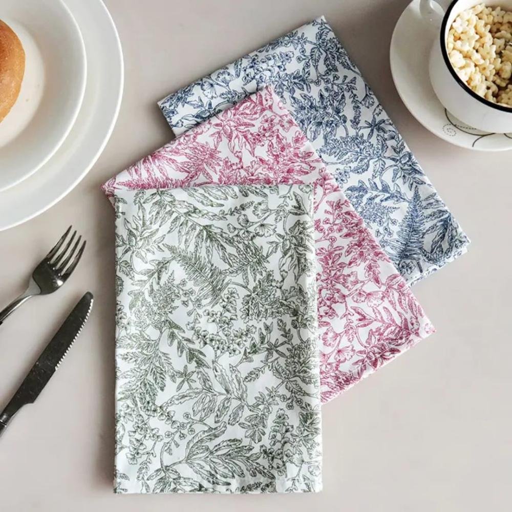 Introducing The Fern & Flora Dinner Napkins — a thoughtfully curated trio inspired by vintage botanical illustrations. Each piece showcases finely drawn ferns, berries, wildflowers, and creeping vines, rendered in a sophisticated palette of sage green, crimson rose, and ink blue. Our Fern & Flora Dinner Napkins are more than just table linen; these napkins are a quiet statement of style, ideal for tea trays, dinner tables, and curated interiors. Designed for those who appreciate the details and dine with intention, this set brings artful elegance to everyday rituals.