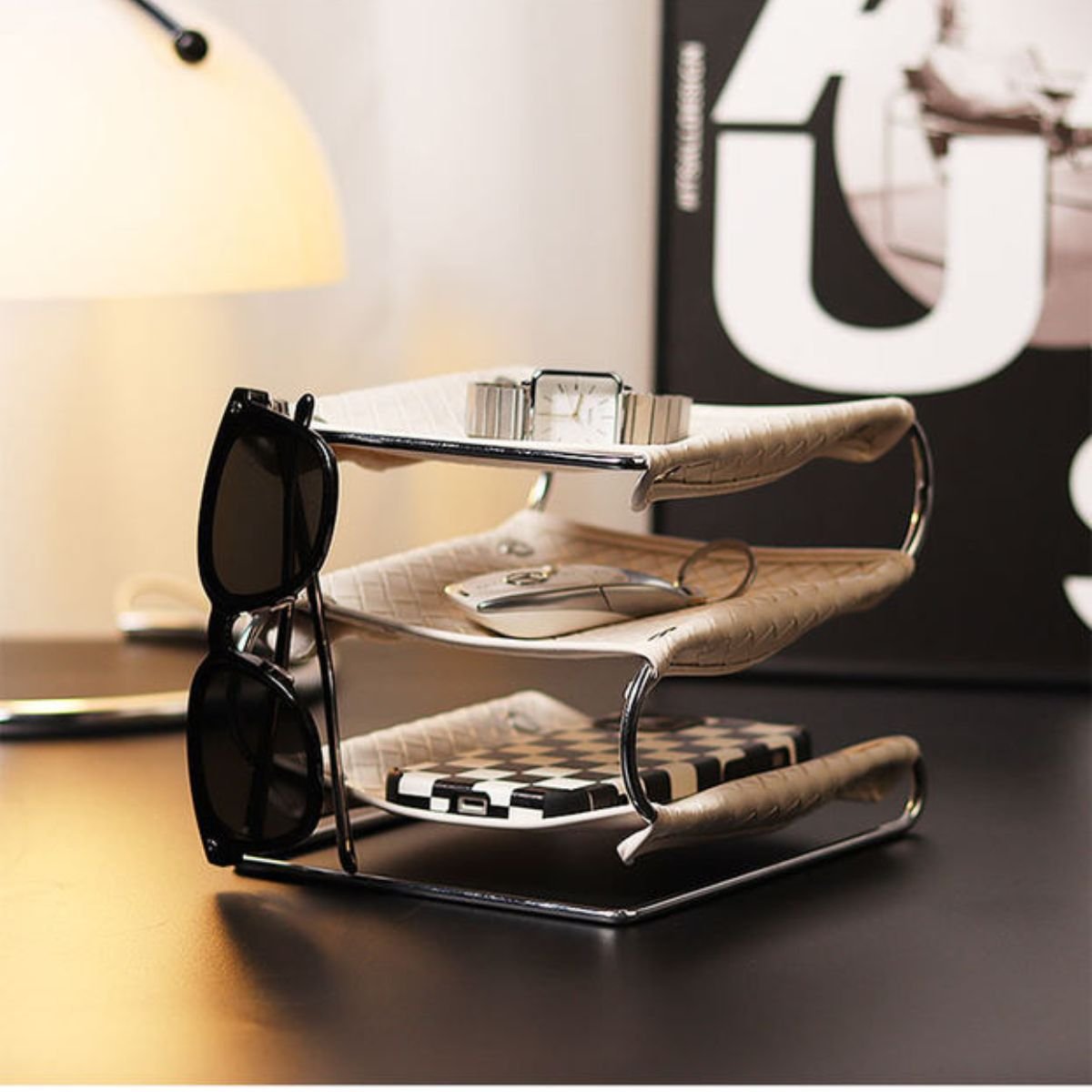 Say goodbye to mess, and hello to mindful sophistication. This multi-layer tray becomes the focal point and a display enhancer of any room or office. It has a vertical, space-saving design with three open layers, perfect for organizing small items while keeping them visible and accessible.