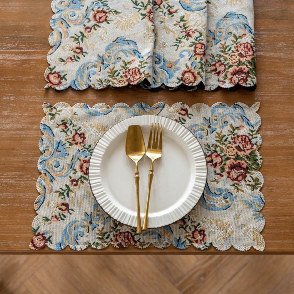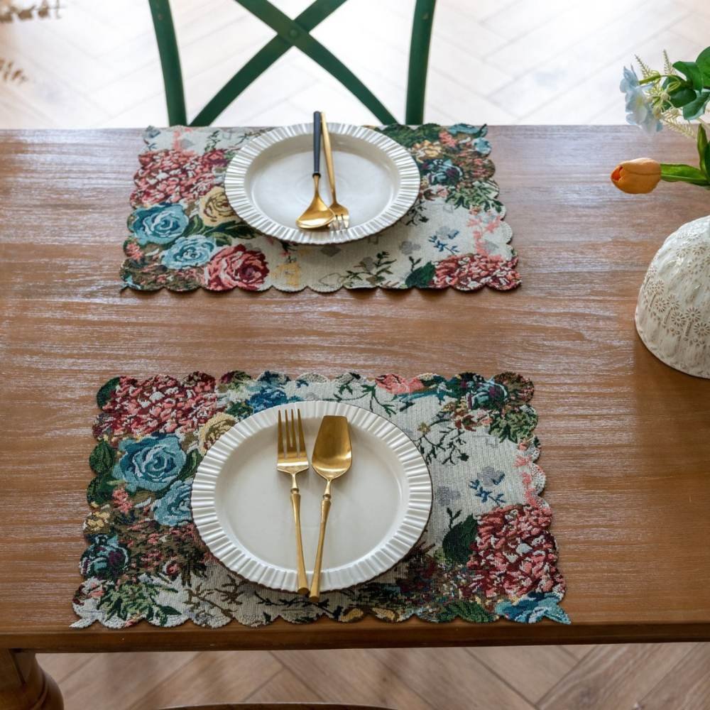 Perfect for cozy classics or vibrant modern homes, the Vintage Romantic Floral Placemats combine function with timeless beauty. Woven from durable linen and cotton-blend fabric, they resist wear while adding instant character to your space. They beautifully merge function with aesthetics. They are long-lasting and protect the table from heat, cold, spills, and scratches. Inspired by European vintage décor and lush botanical gardens, their rich colors and intricate details make your table more than just furniture—it becomes a statement. Hence, our Vintage Romantic Floral Placemats not only protect, but they also infuse warmth, charm, and artistry into your home.