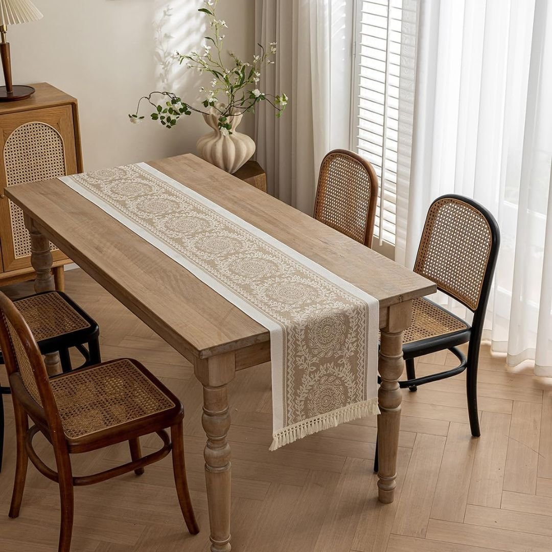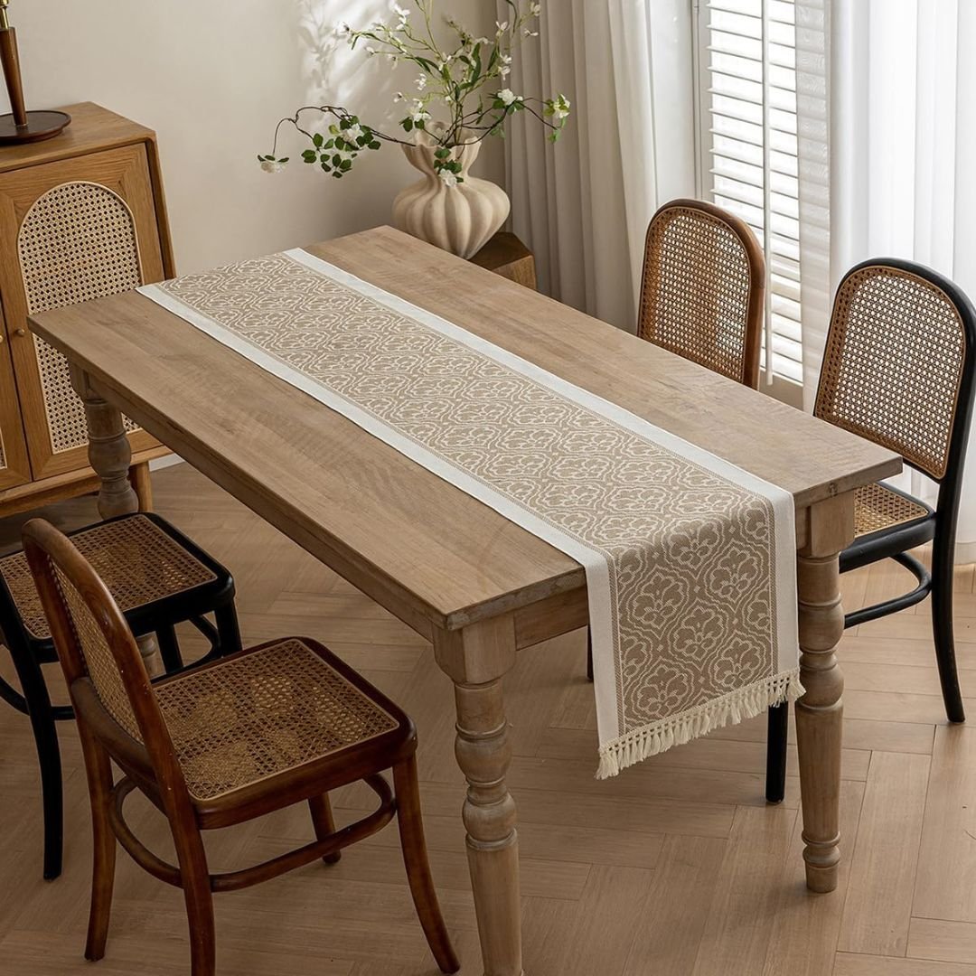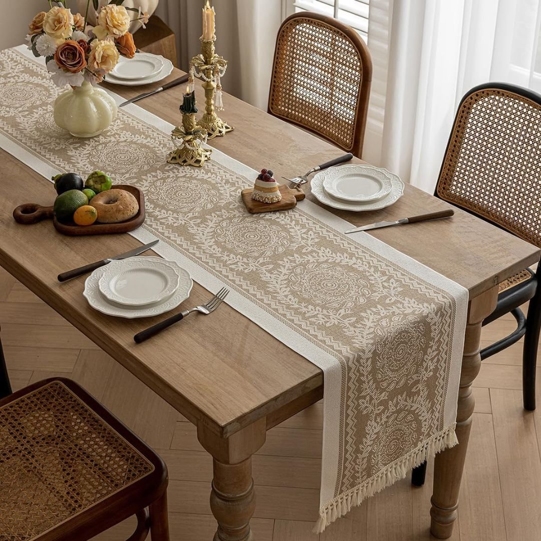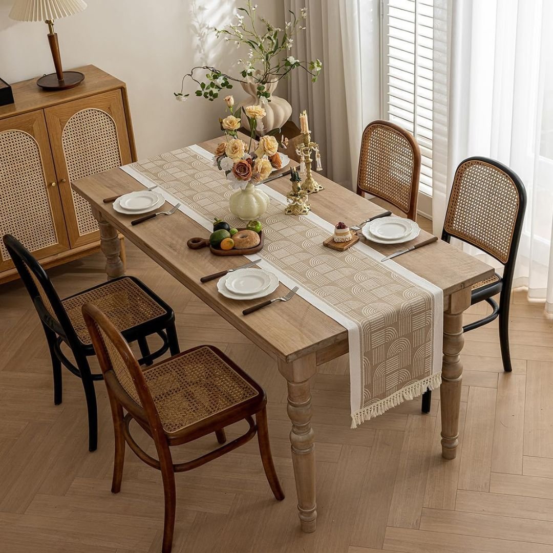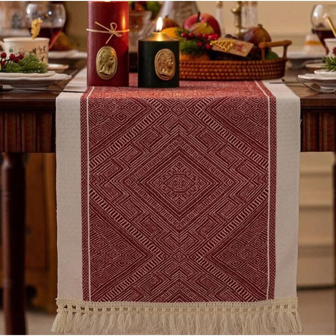 Don’t want a table runner that screams for attention so much that it becomes the focal point of your room? Then these neutral woven pattern table runners are probably what you’re looking for. The neutral color on these table runners easily blends in with any kind of table/cabinet setting. Create a captivating look combining them with flowers, candlesticks, green plants and other decorations.
