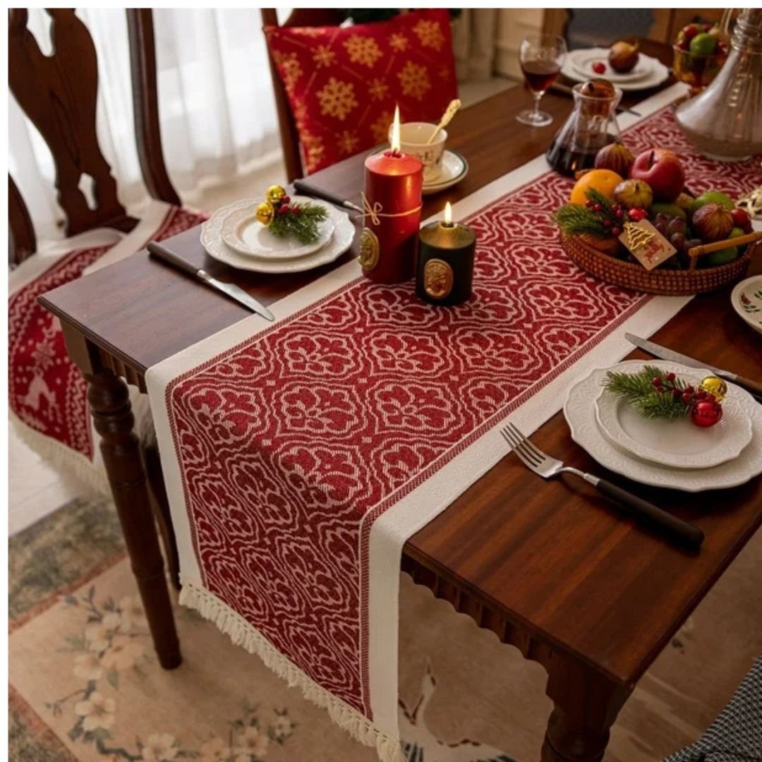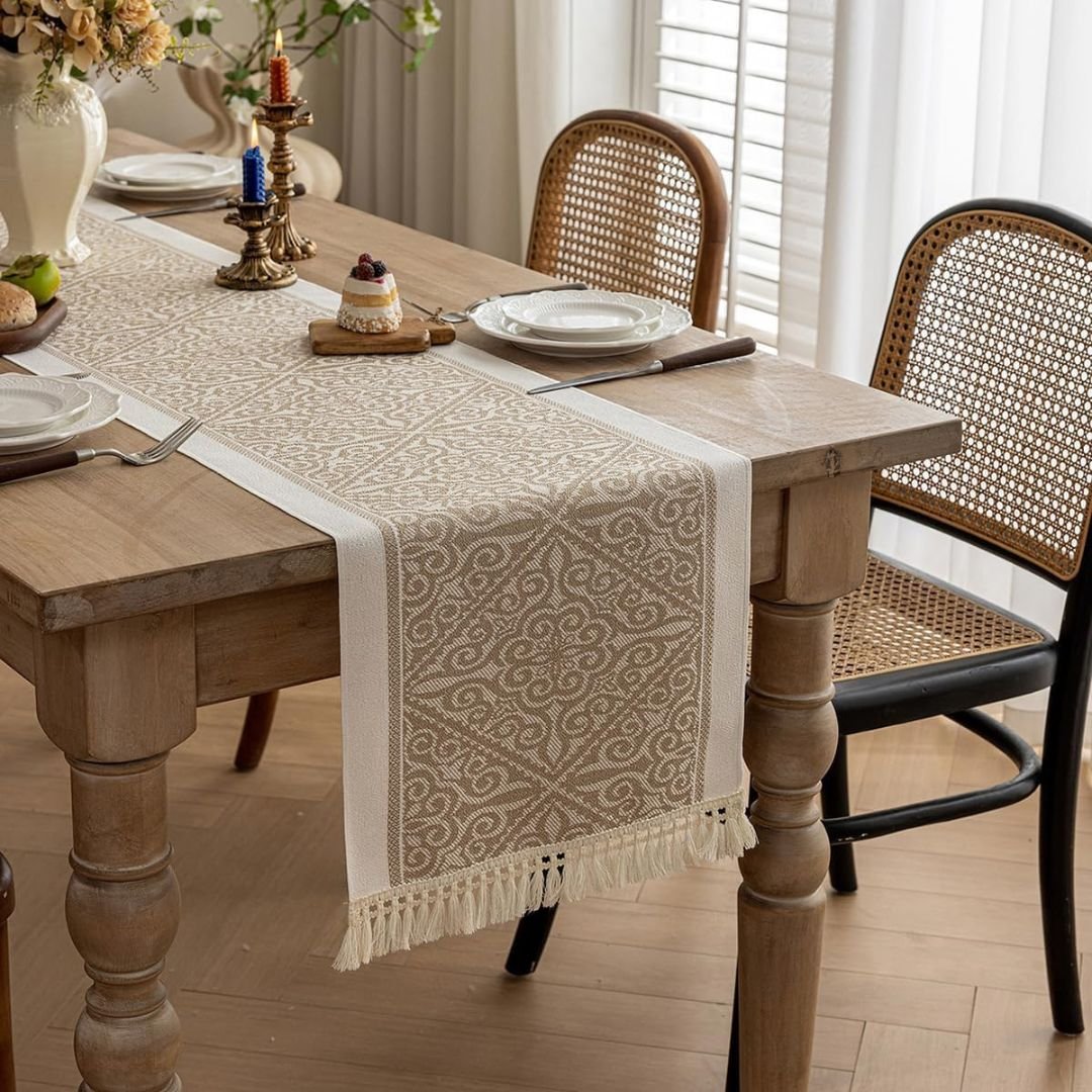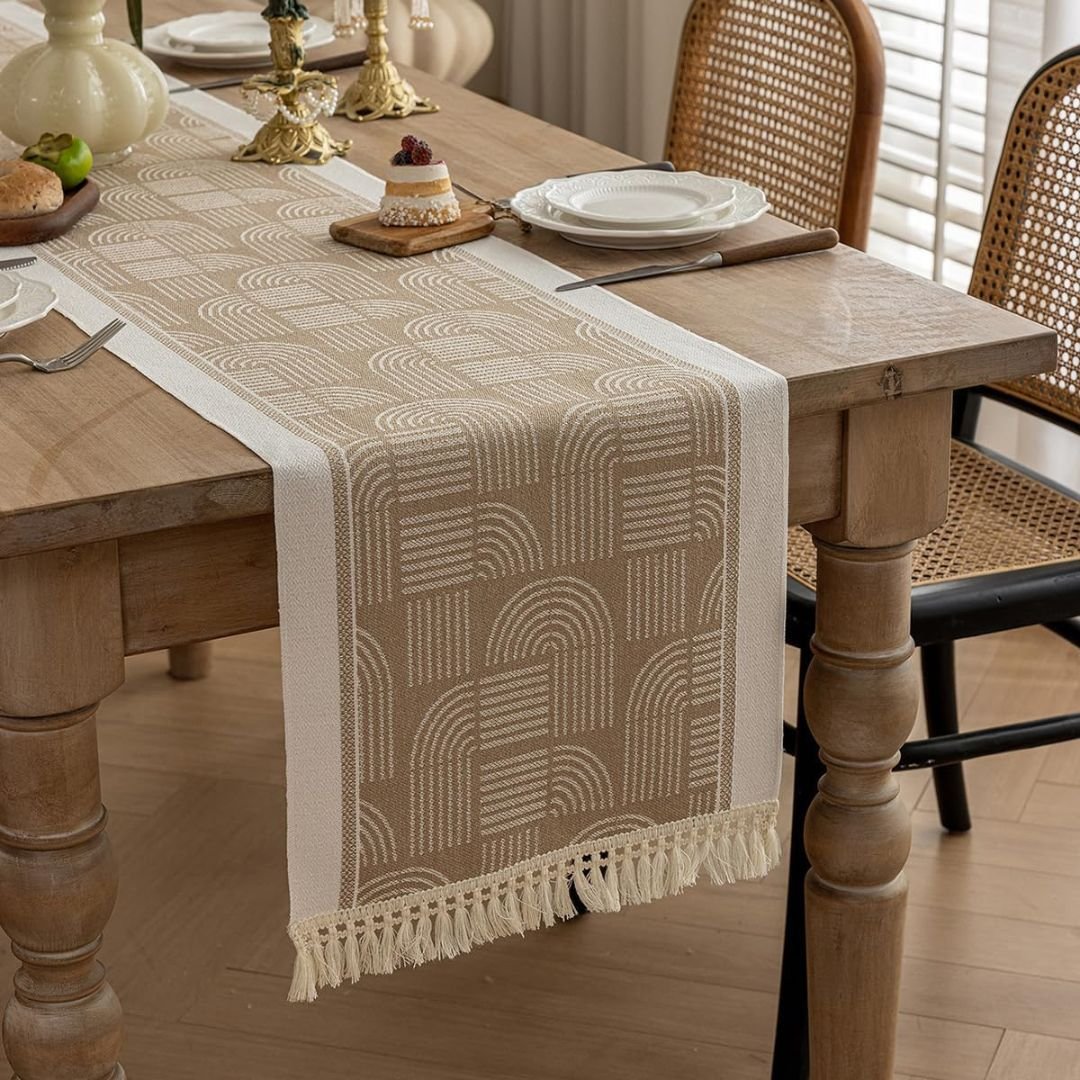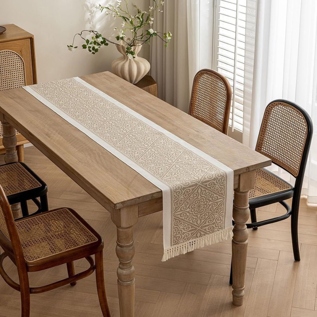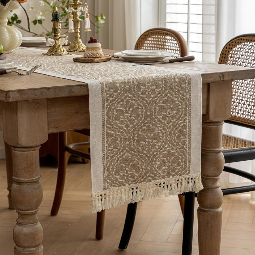 Don’t want a table runner that screams for attention so much that it becomes the focal point of your room? Then these neutral woven pattern table runners are probably what you’re looking for. The neutral color on these table runners easily blends in with any kind of table/cabinet setting. Create a captivating look combining them with flowers, candlesticks, green plants and other decorations.